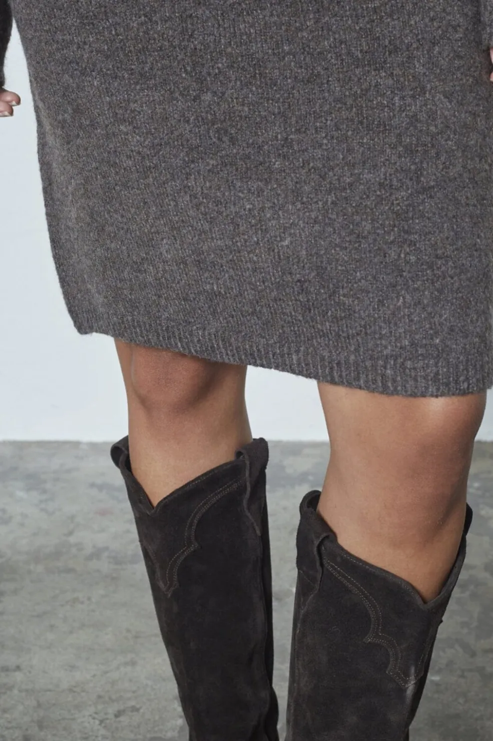 Strikket nederdel fra Sisters Point i brun med marl-mønster. Den strikkede tekstur giver nederdelen et rustikt udtryk.