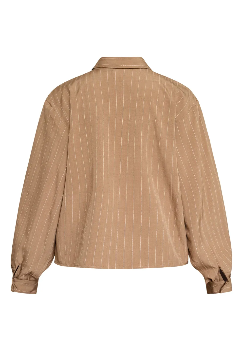 Skjorte fra Sisters Point i hasselnøddebrun med pinstriber. Den har en klassisk skjortekrave og knaplukning foran, samt en brystlomme på venstre side.