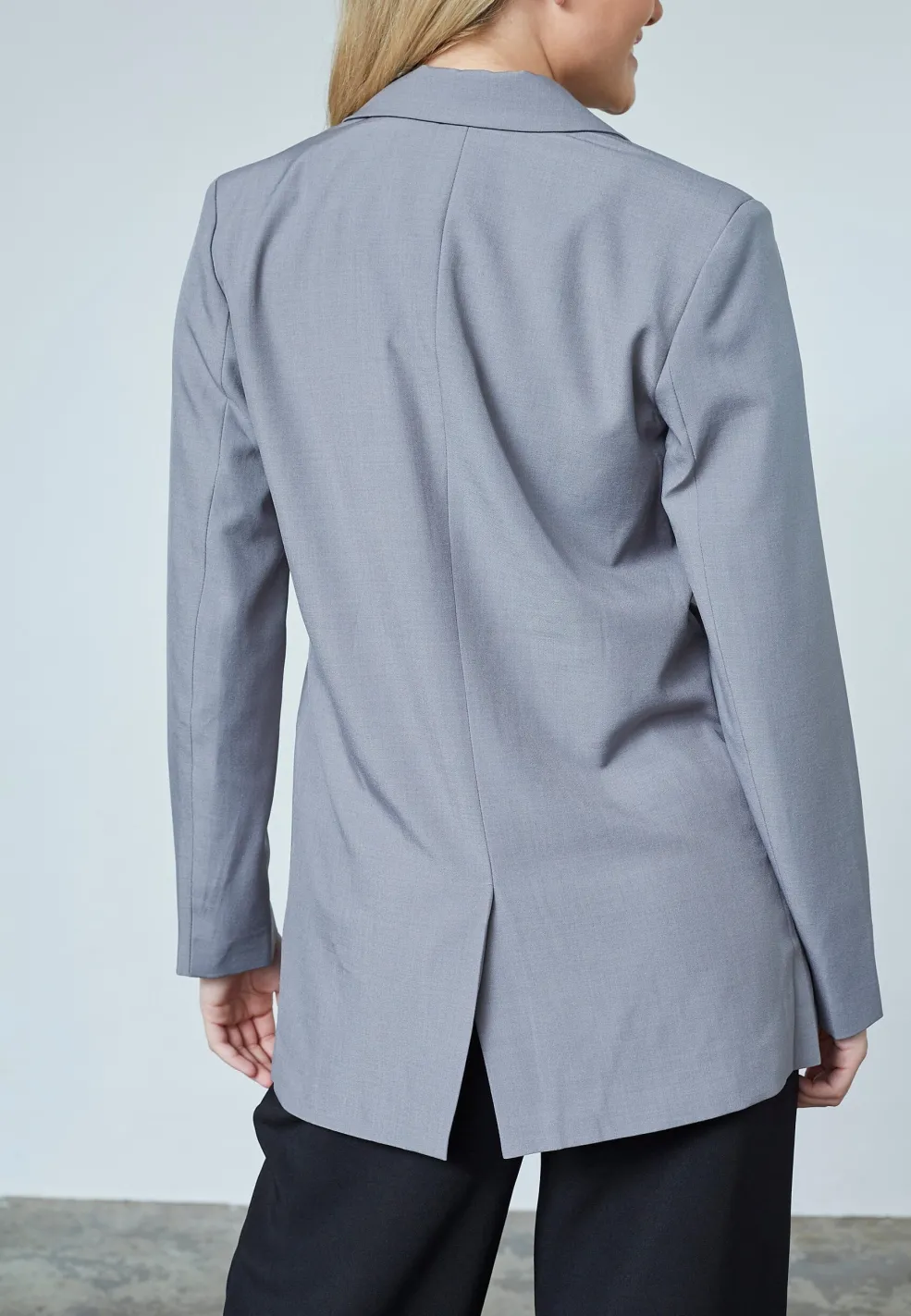 Grå blazer fra Sisters Point i en meleret grå nuance. Blazeren har reverskrave, knaplukning foran og to lommer med klap.