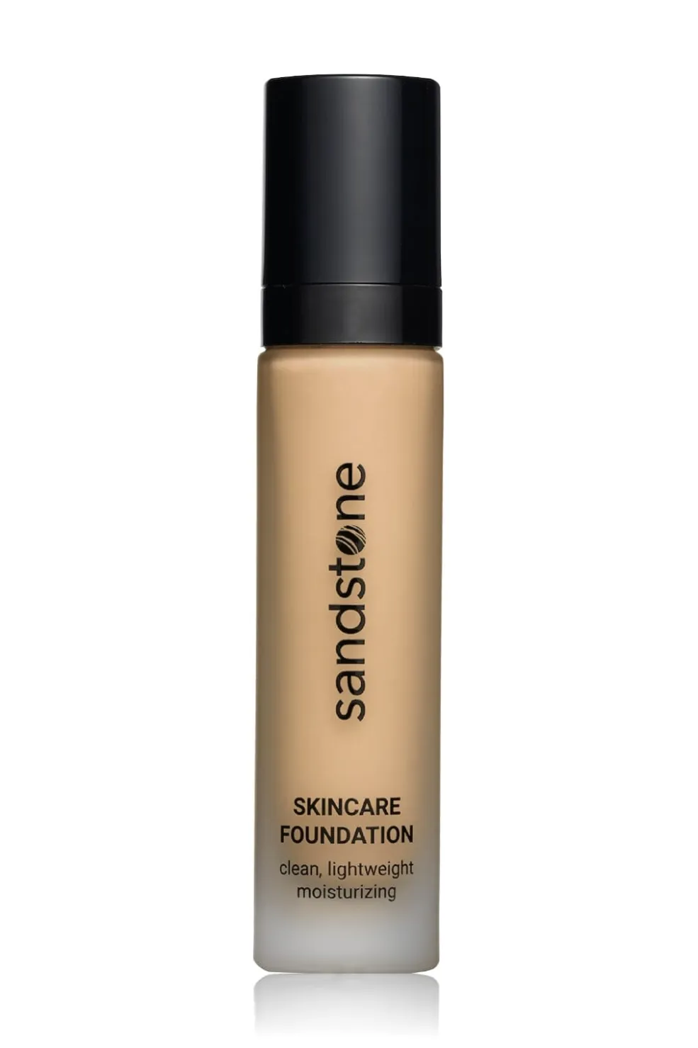 Foundation fra Sandstone med let dækning i farven Medium Latte. Den cremede konsistens giver en naturlig finish og fugt til huden.