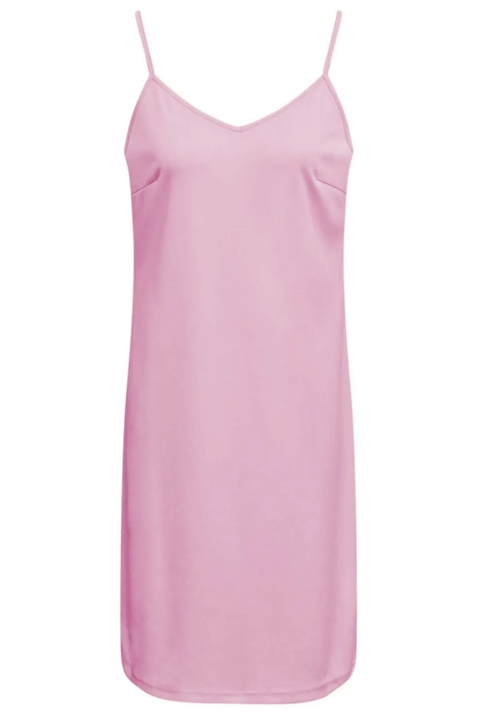 Slipkjole fra A-View i en lys rosa nuance. Kjolen har tynde, justerbare stropper og en V-udskæring, der giver den et rent og enkelt udtryk.