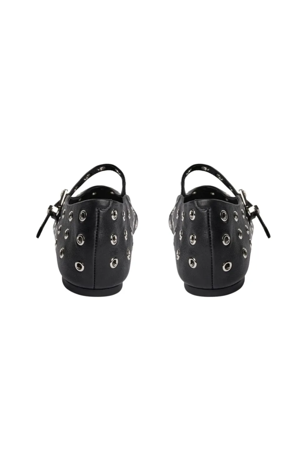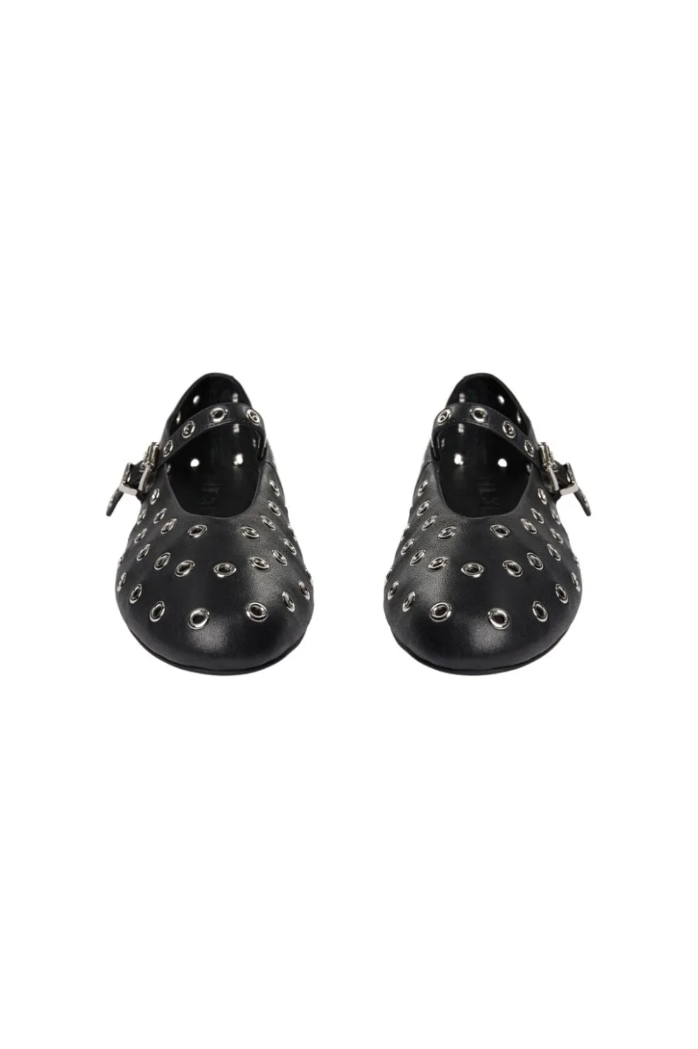 Sort ballerina-sko fra Sofie Schnoor med spids tå og metaløjer. Skoen er lavet i læder med gummisål og har en praktisk spænde-lukning.