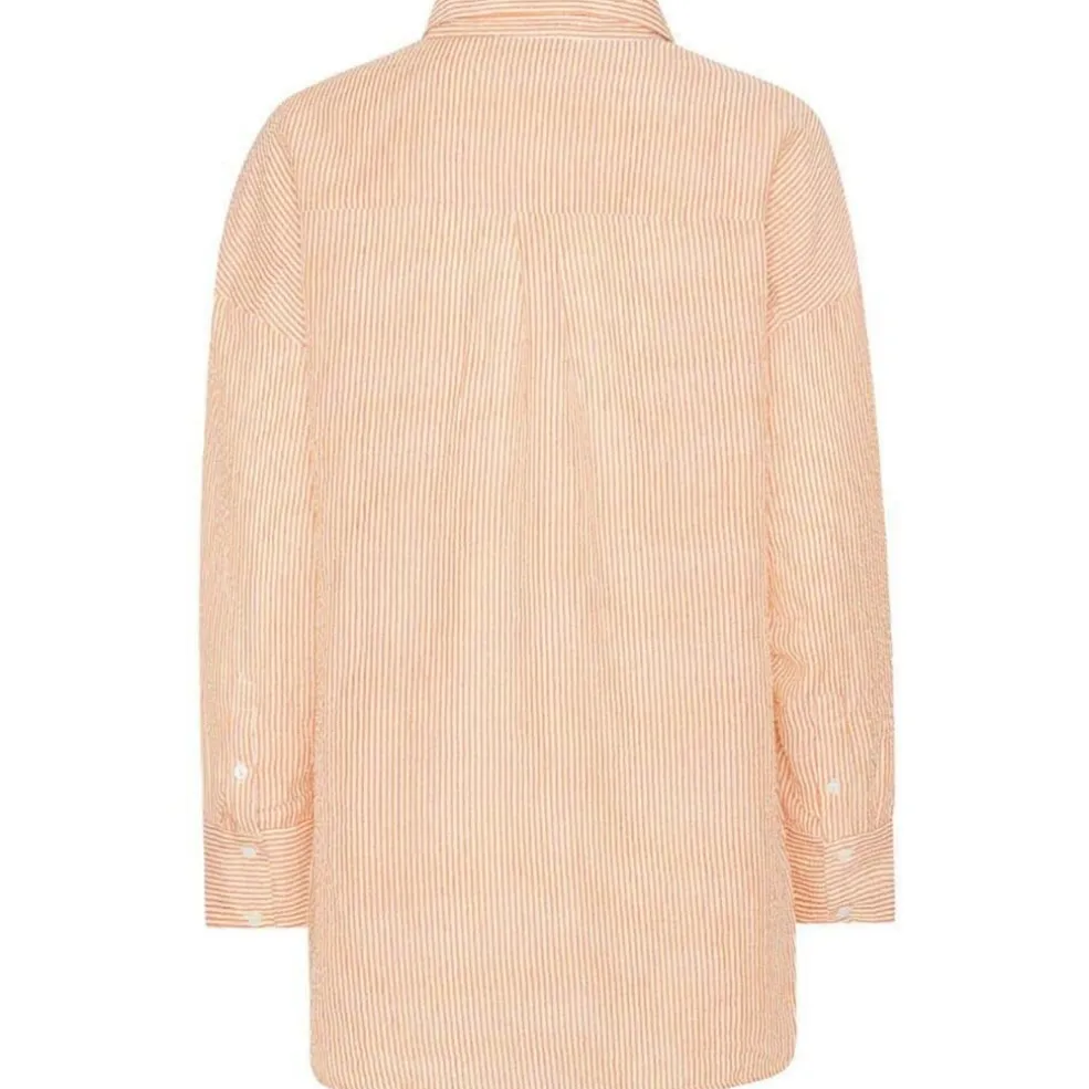 Stribet skjorte fra A-View i orange og hvid. Den løse pasform og det klassiske stribemønster giver skjorten et afslappet udtryk, der passer til mange anledninger.