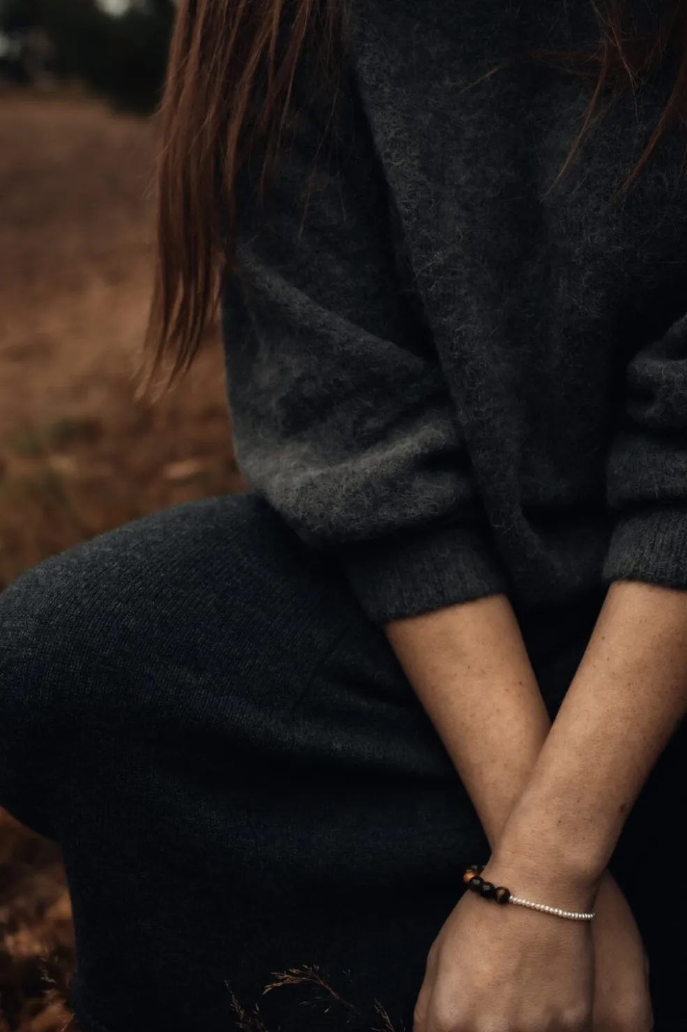 Håndlavet armbånd fra Sorelle Jewellery med sterling sølv, tigerøje og ferskvandsperler. Fremstillet på eget værksted i Danmark med fokus på godt håndværk.