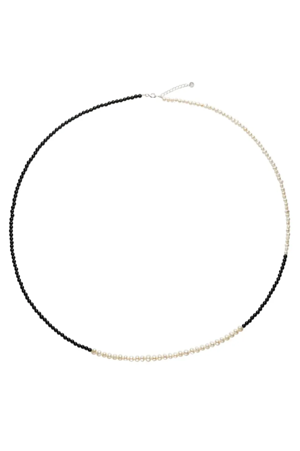Håndlavet halskæde fra Sorelle Jewellery med en kombination af hvide ferskvandsperler og sort agat. Halskæden er fremstillet i Danmark af sterling sølv.