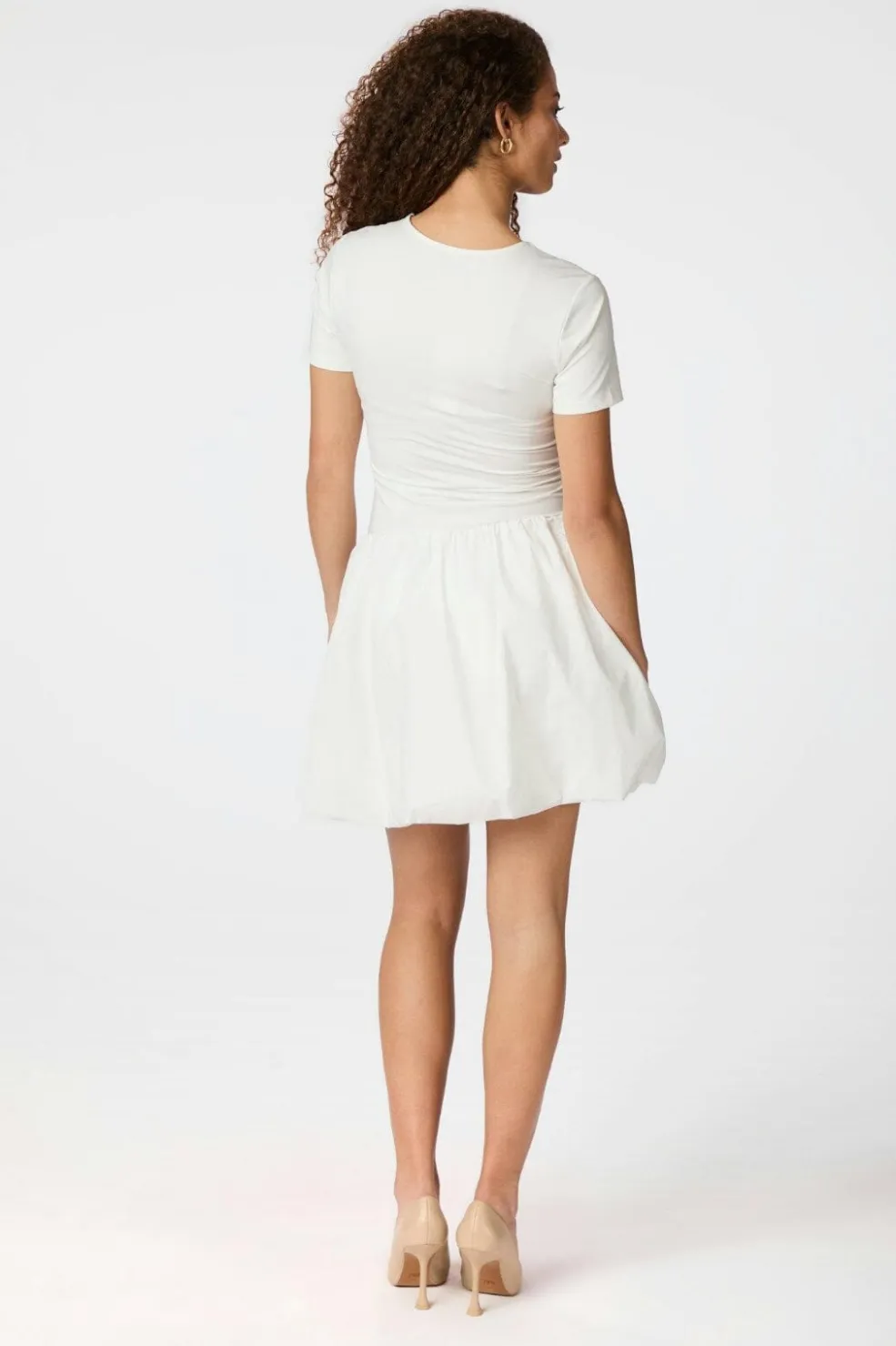 Hvid kort nederdel fra Neo Noir med ballonform og flæsedetaljer. Den fyldige silhuet og den løse pasform giver nederdelen et let og luftigt udtryk.
