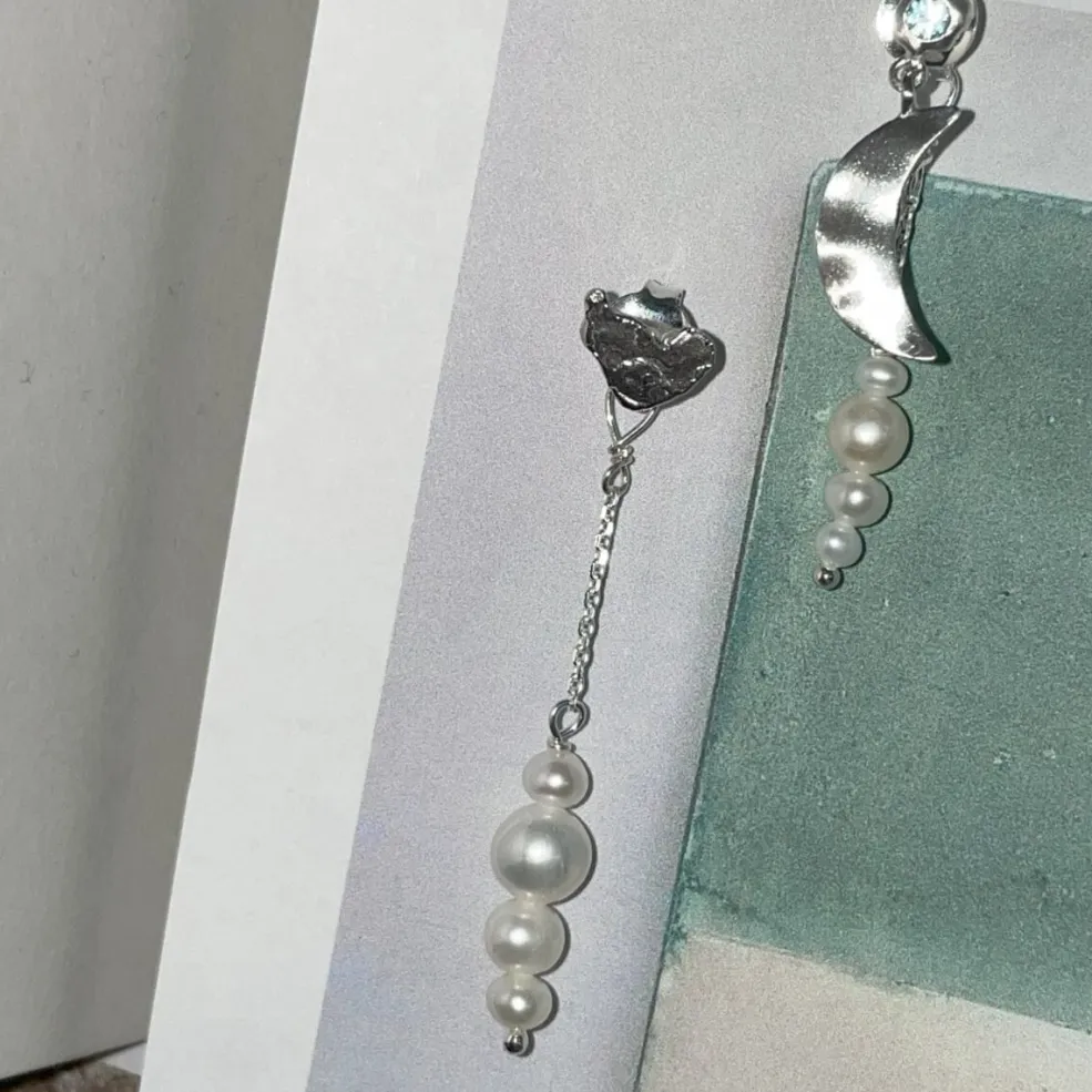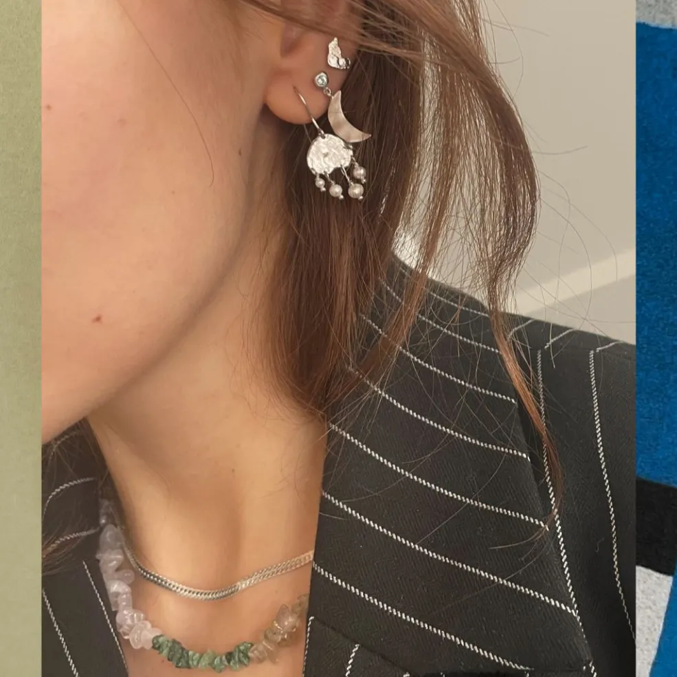 Mega cool ørestik med blå ædelsten og et smukt måne-vedhæng.