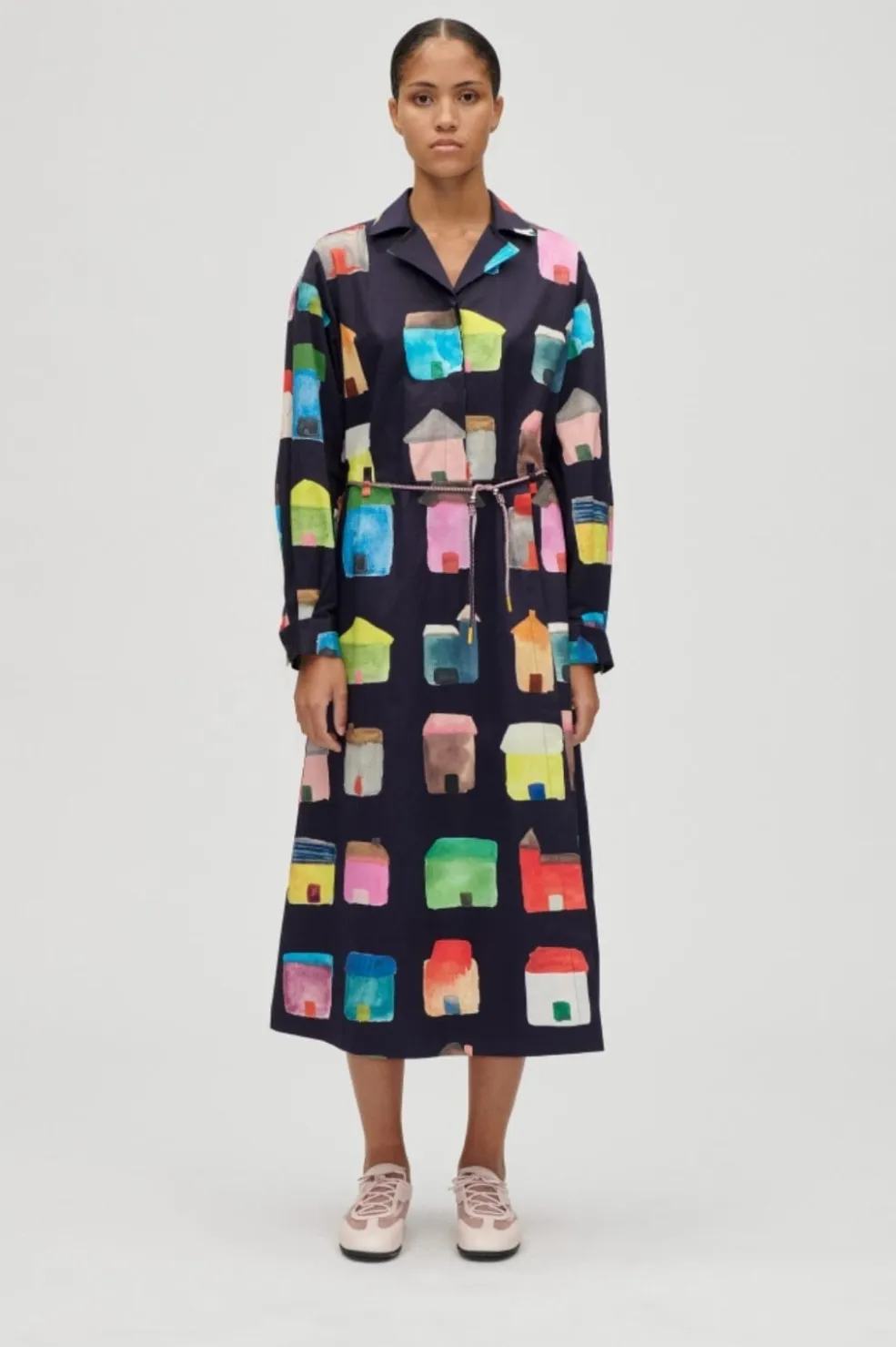 Model: Sg-aw25-d172-2340 – 2340 Midweight Cotton, Long Sleeve Workwear Midi Dress