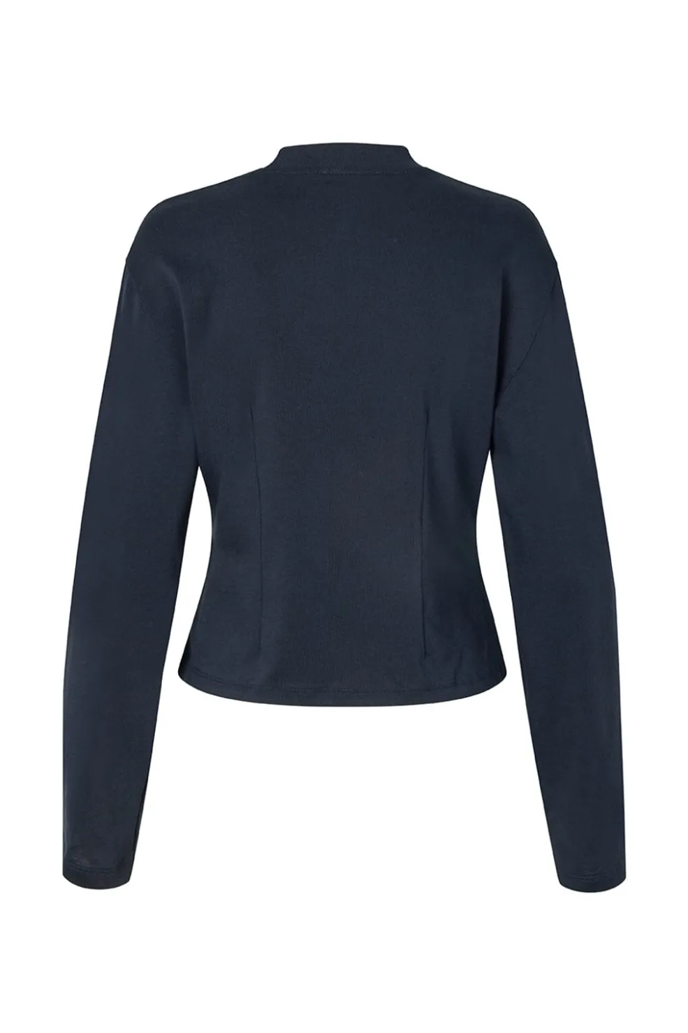 Mørkeblå langærmet t-shirt fra Modström i økologisk bomuld. T-shirten har en rund hals og en slim fit-pasform, der giver et tætsiddende look.