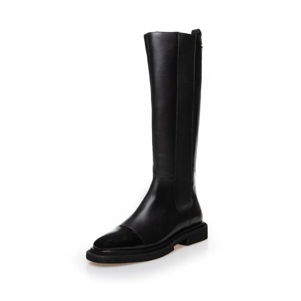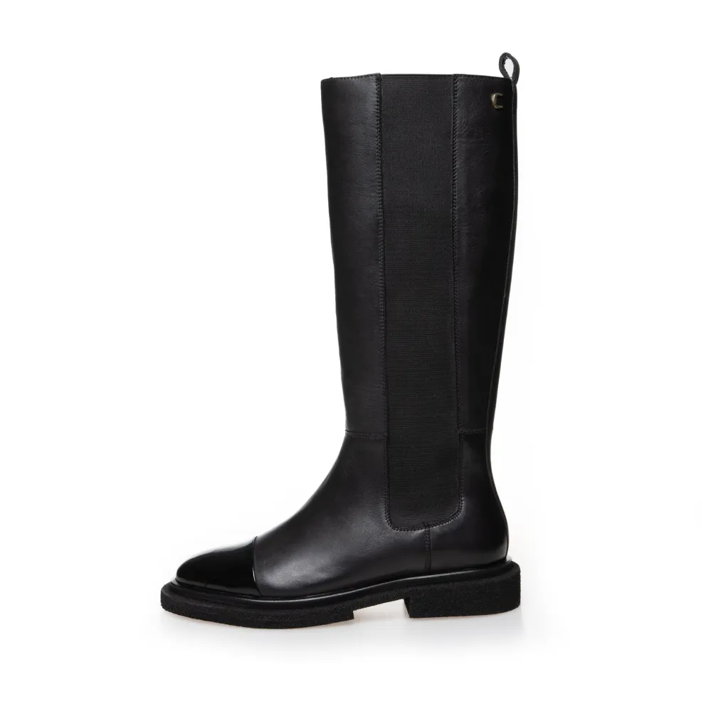 Sort støvle fra Copenhagen Shoes med blank tå og hæl. Støvlen er fremstillet af blødt læder og har elastik på ydersiden samt lynlås på indersiden.