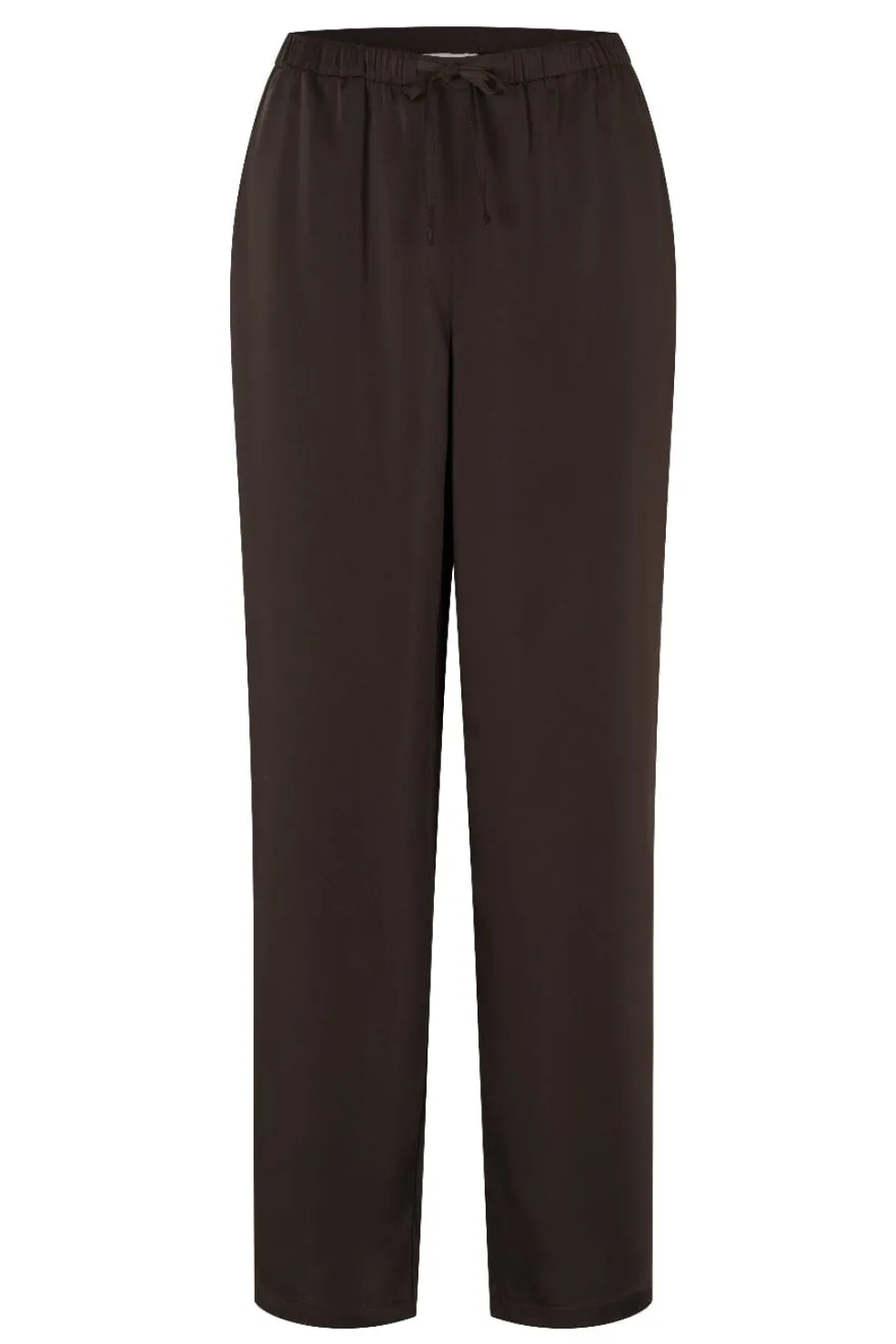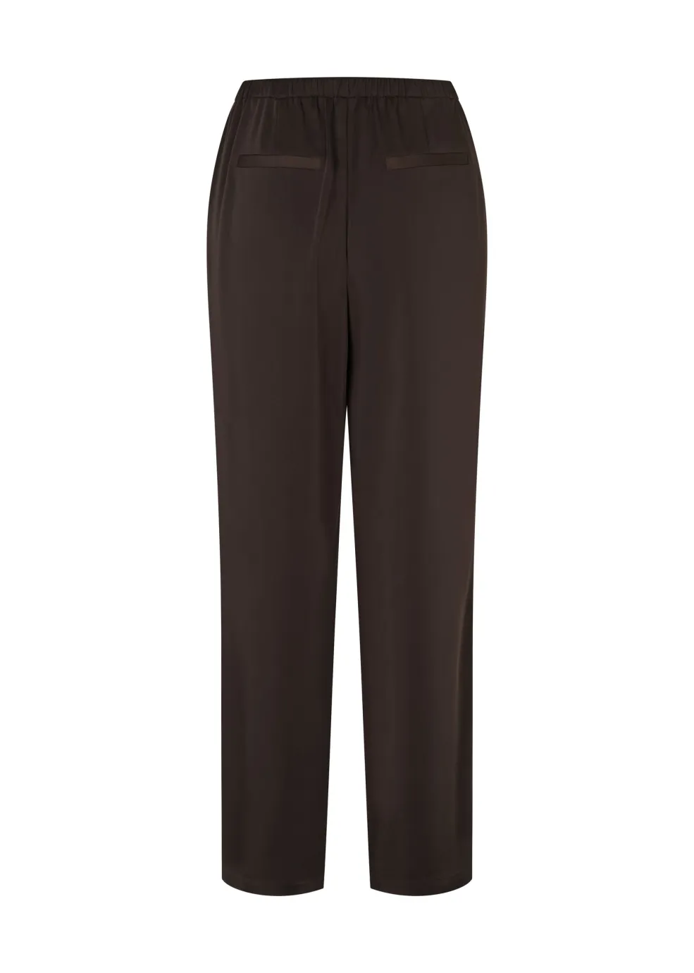 Brune bukser fra Modström, lavet af 96 % polyester og 4 % elastan. Materialet giver en god balance mellem stræk og formfasthed.