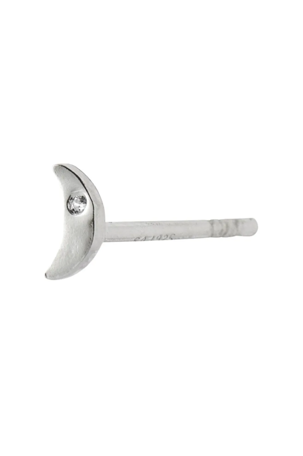 Sølvørering fra Stine A i halvmåneform med hvid zirkon. Øreringen er lavet i 925 sterlingsølv med en lille sten indsat i designet.