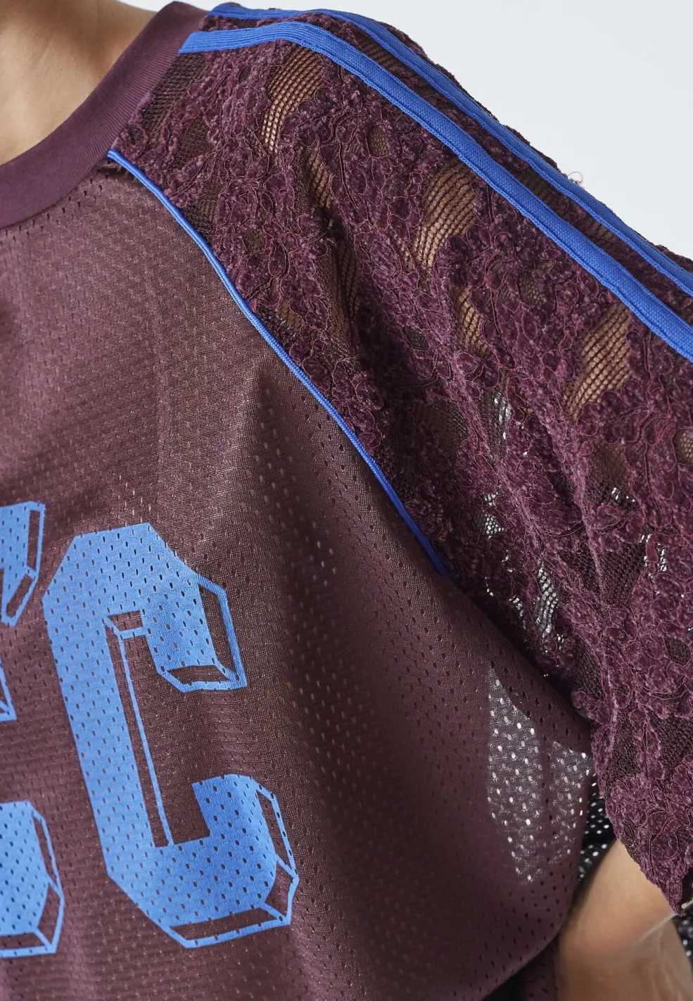 T-shirt fra Co´Couture i blå nuance med et stort C’Ctryk på forsiden. Blonde detaljer på ærmerne og blå striber giver T-shirten et grafisk udtryk.