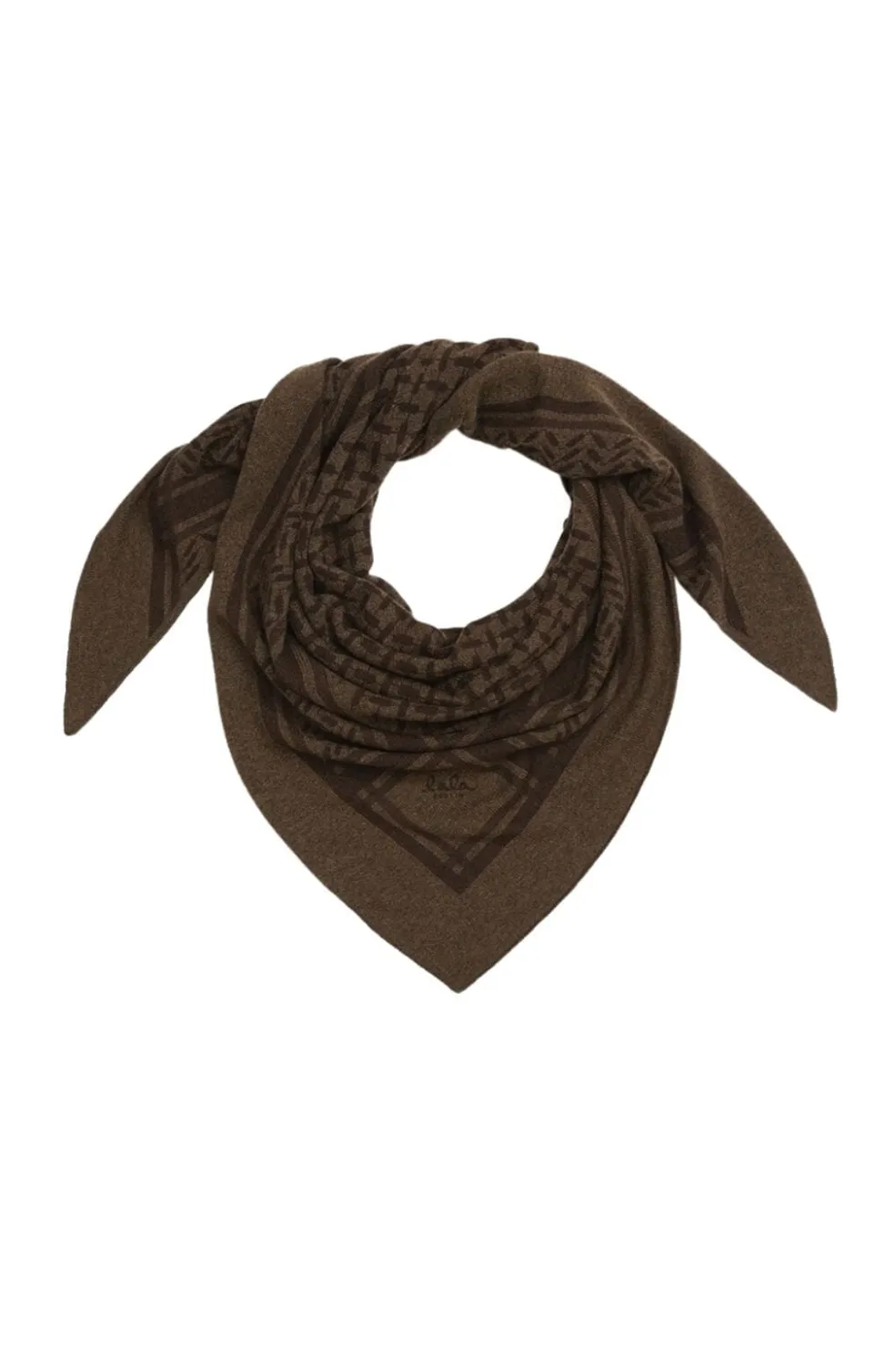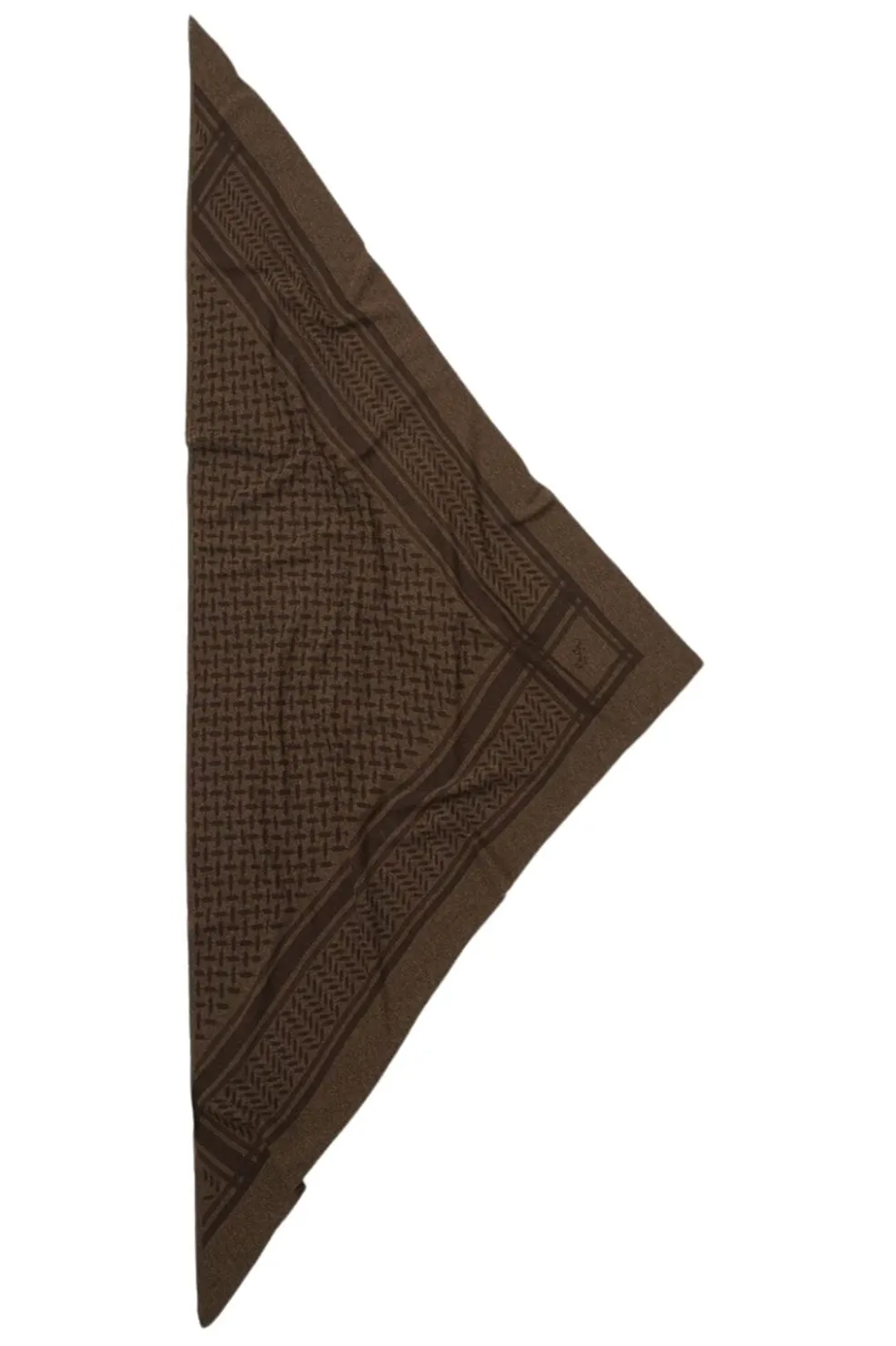 Trekantet tørklæde fra Lala Berlin i brun nuance. Tørklædet er lavet af cashmere med sildebensmønster og print, der giver det karakter og dybde.