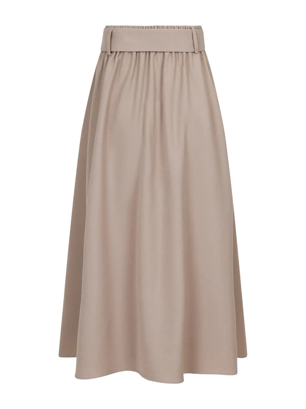 Sandfarvet plisseret nederdel fra Valentin Studio med høj talje. Nederdelen har bløde folder, bælte og elastik bagtil samt lommer foran.