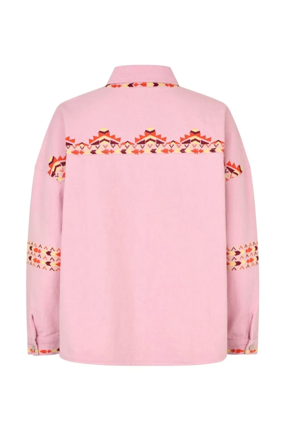 Lyserød overskjorte fra Lollys Laundry med broderede mønstre. Skjorten har skjortekrave, trykknapper og en løs pasform.