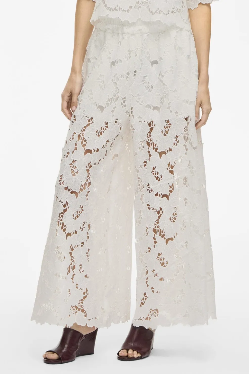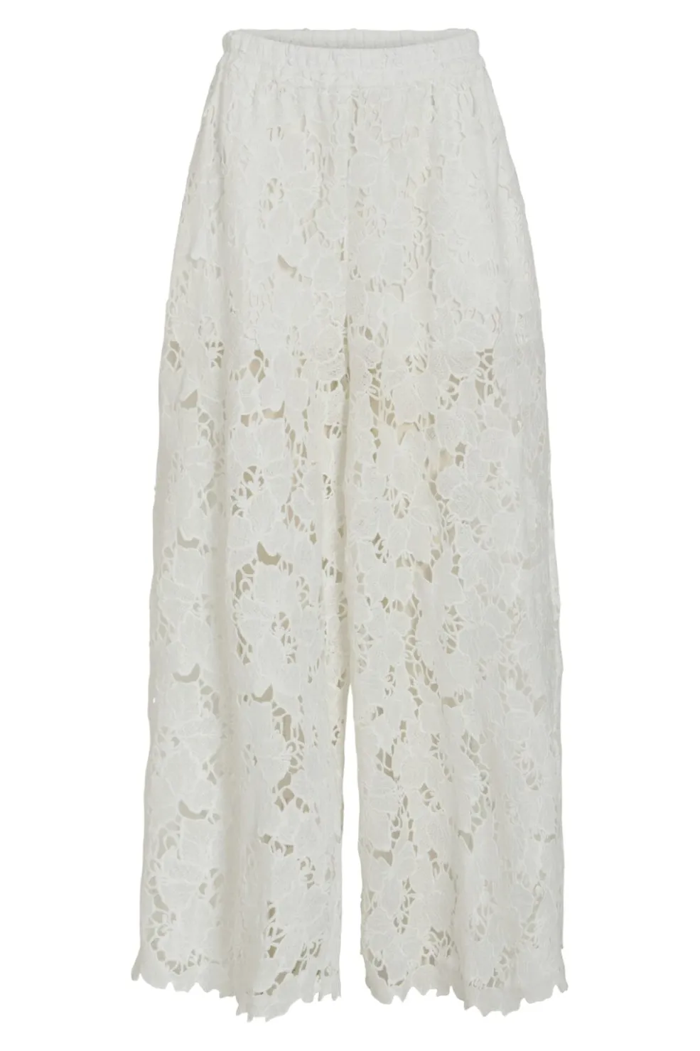 Giv din garderobe et ekstra pift med dette trendy stykke tøj.- Produkttype: Blondebukser – Talje: Høj talje – Ekstra detaljer: Foldbar linning, Blonderdetalje – Pasform: Løs pasform