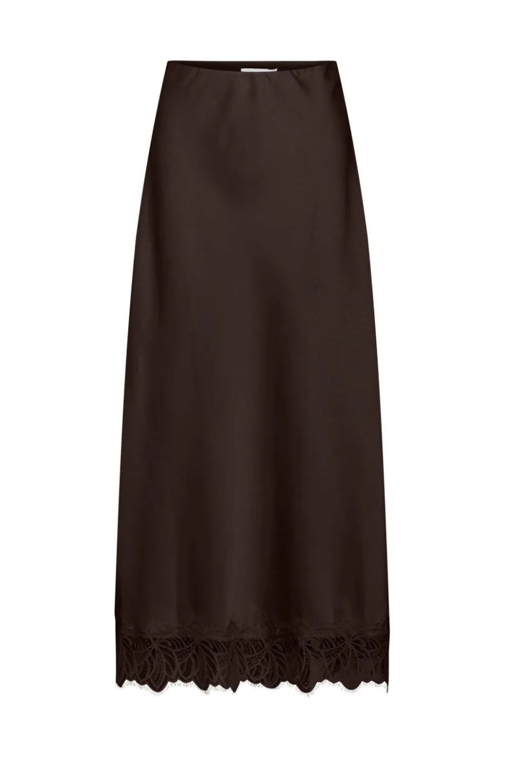 Brun ankelnederdel fra Vila i ensfarvet design. Nederdelen har et lige snit og er dekoreret med en blondekant forneden, der giver et fint touch til det enkle design.