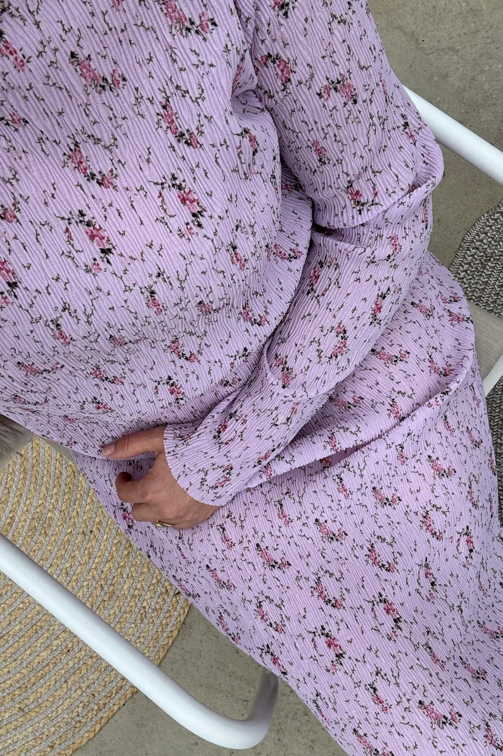 - Plisseret stof med blomsterprint