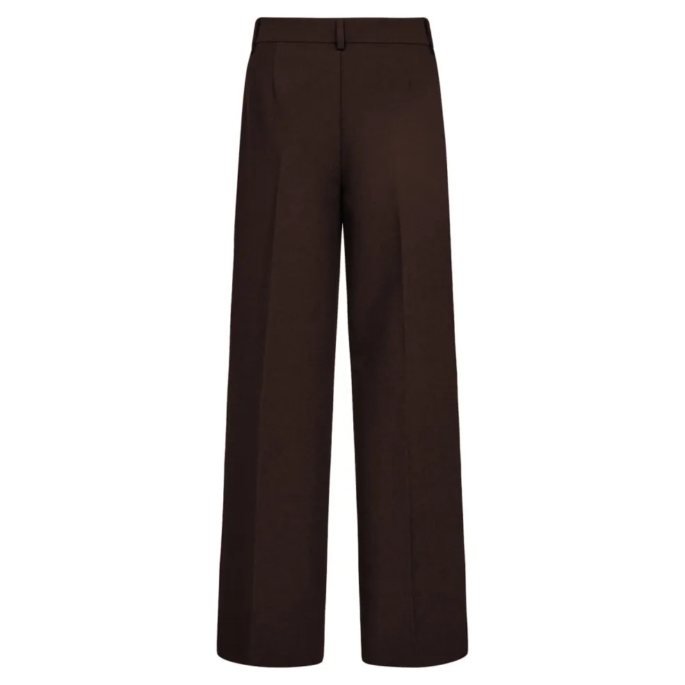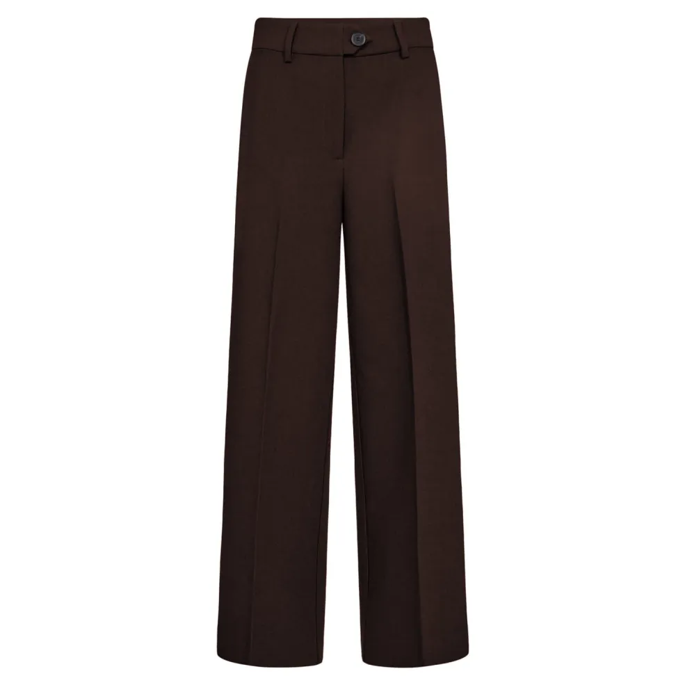 Mørkebrune viddebukser fra Co´Couture med høj talje og brede bukseben. Bukserne har en løs pasform og går ned til læggen.