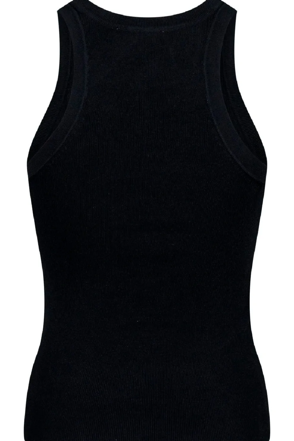 Sort strikket top fra Neo Noir i ribstrik. Toppen har en tætsiddende pasform med rund halsudskæring og ærmeløst design, der fremhæver den ribbede tekstur.