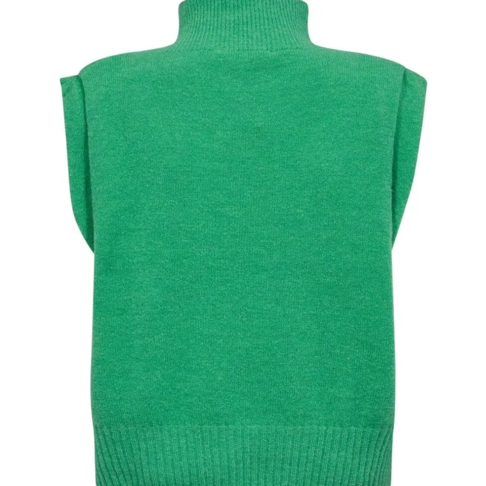 Grøn strikket top fra Gossia i en ærmeløs pullover-stil. Toppen har høj hals og en løs pasform, der passer til hverdagen.