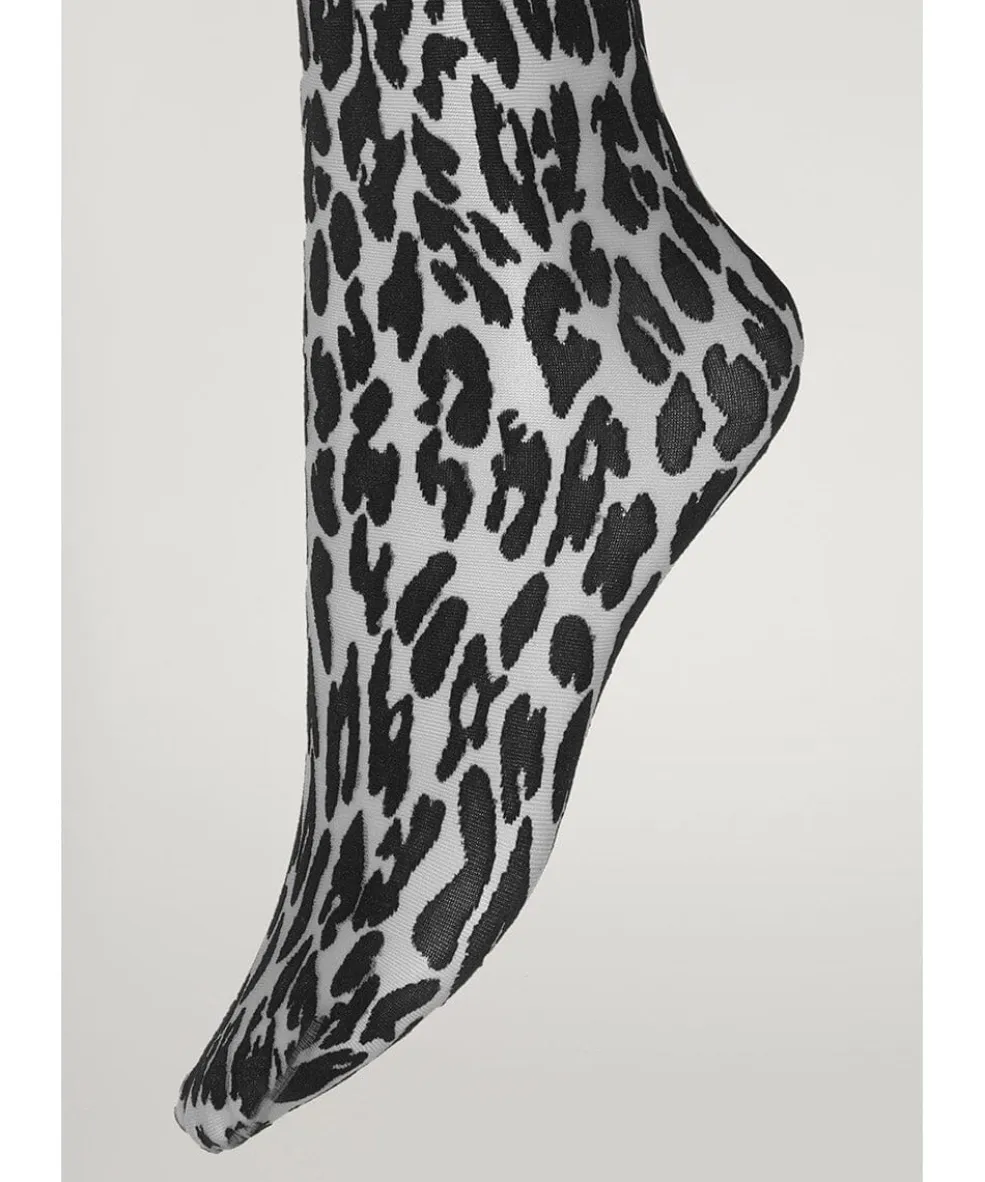 Strømpebukser fra Wolford i sort med leopardmønster. Mønsteret er holdt i sorte nuancer på en gennemsigtig baggrund.
