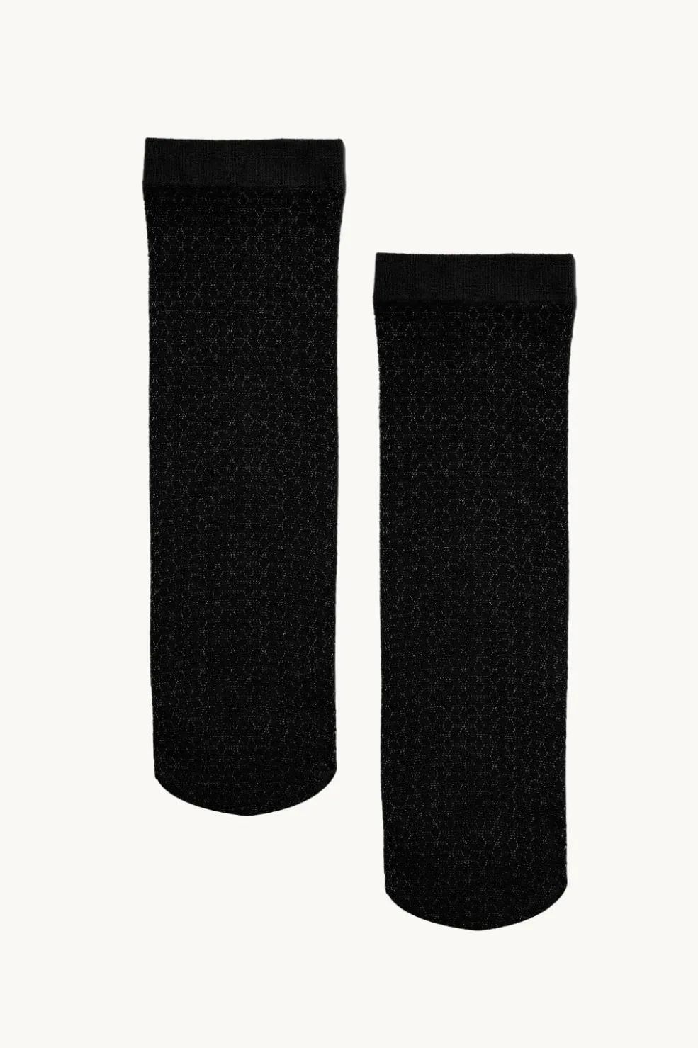 Sorte sokker fra Wolford med jacquardvævet mosaikmønster. Sokkerne har en ankelhøj længde og et gennemgående mønster, der skaber en fin struktur i stoffet.