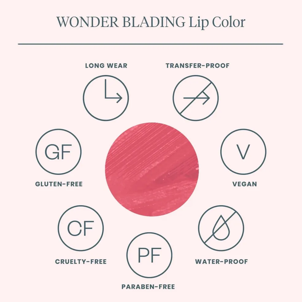 Den vandfaste formel holder farven på plads hele dagen uden at smitte af på glas eller tøj.