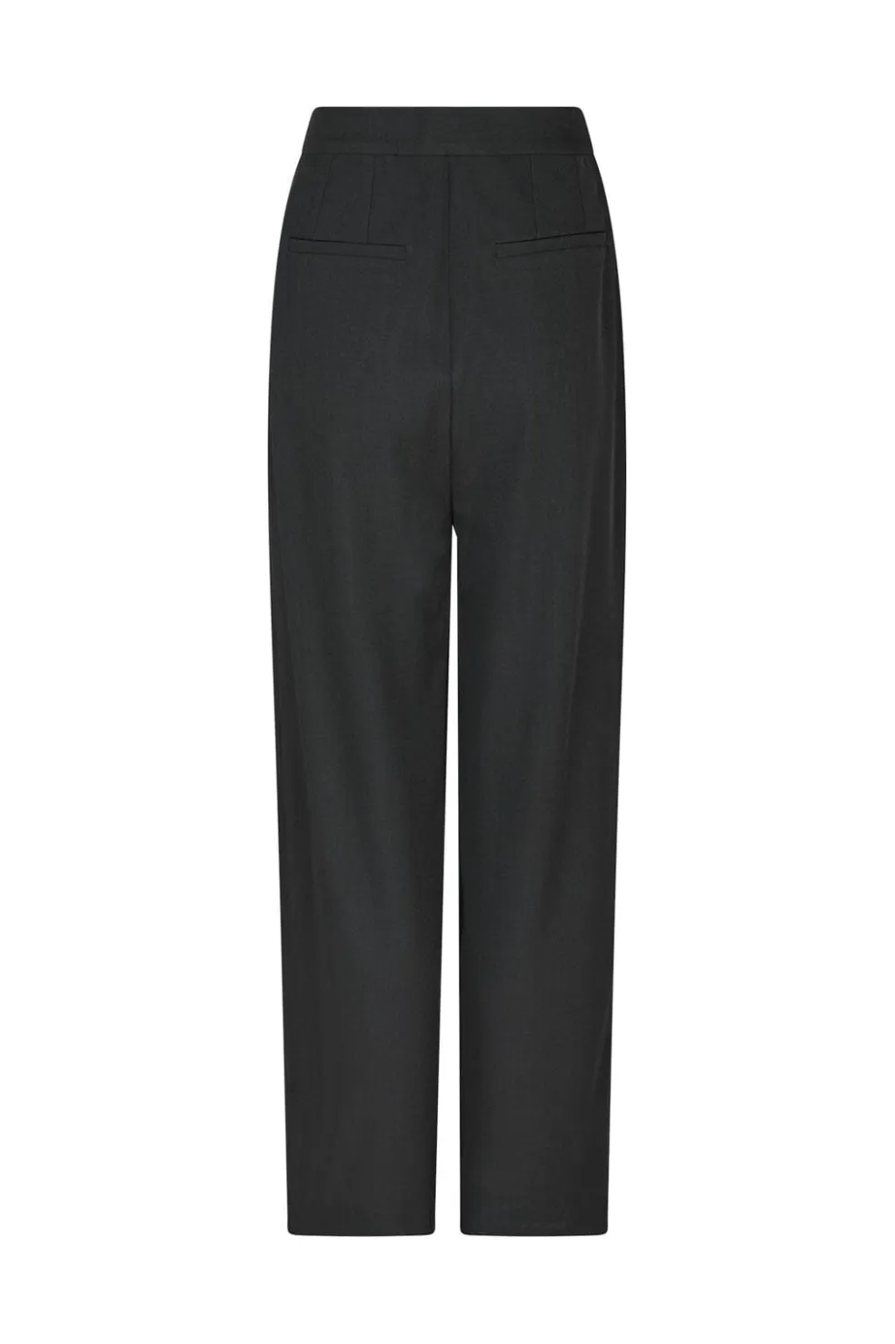 Mørkegrå bukser fra Neo Noir med høj talje og dobbelte læg foran. Bukserne har en løs pasform og går ned til gulvet. De har paspel-lommer bagpå og en praktisk lukning med skjult lynlås.