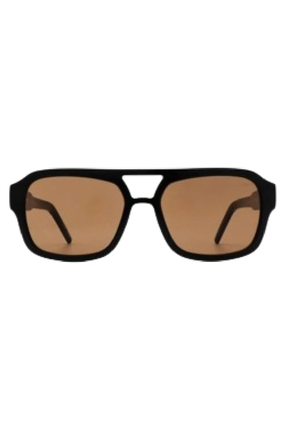 Sorte solbriller fra A. Kjærbede med tyk sort ramme og brune linser. Brillerne har en rektangulær form og er lavet af holdbart polycarbonat.