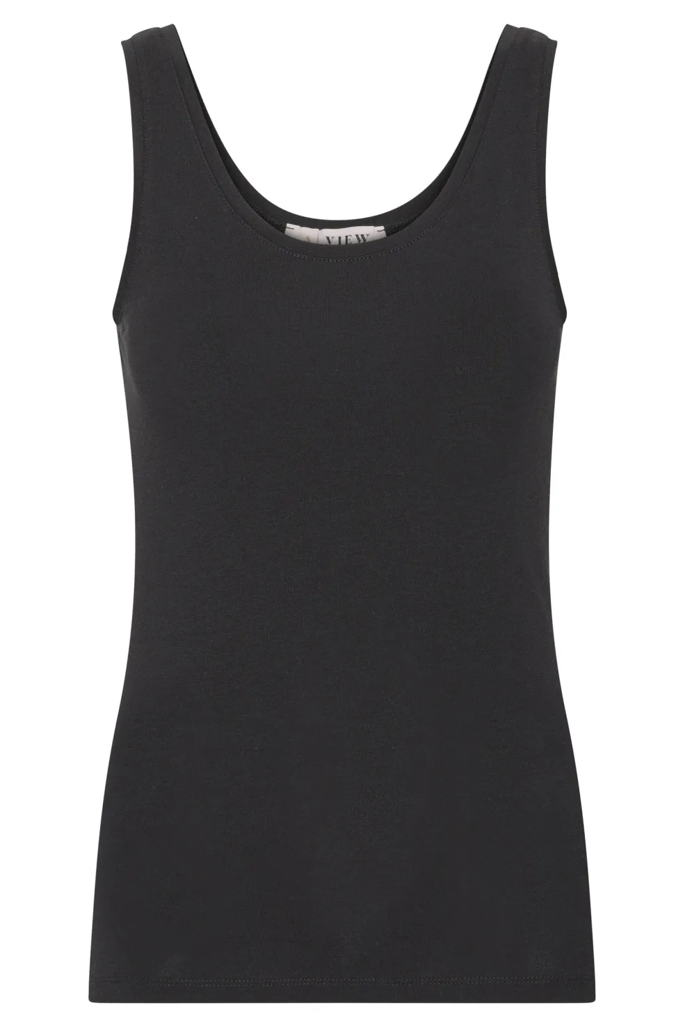 Sort tanktop fra A-View i en blanding af bomuld og modal. Toppen har en tætsiddende pasform med brede stropper og rund halsudskæring.