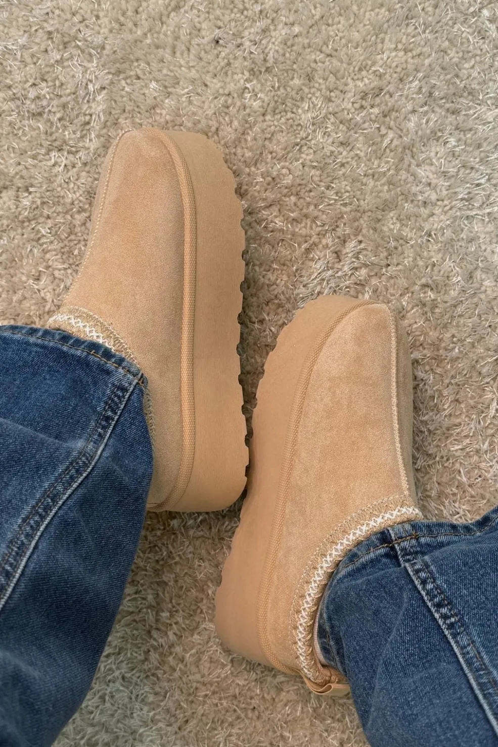 Hjemmesko fra Bloom i beige, lavet af syntetisk materiale. Slipperen har en kilehæl og et design uden lukning.