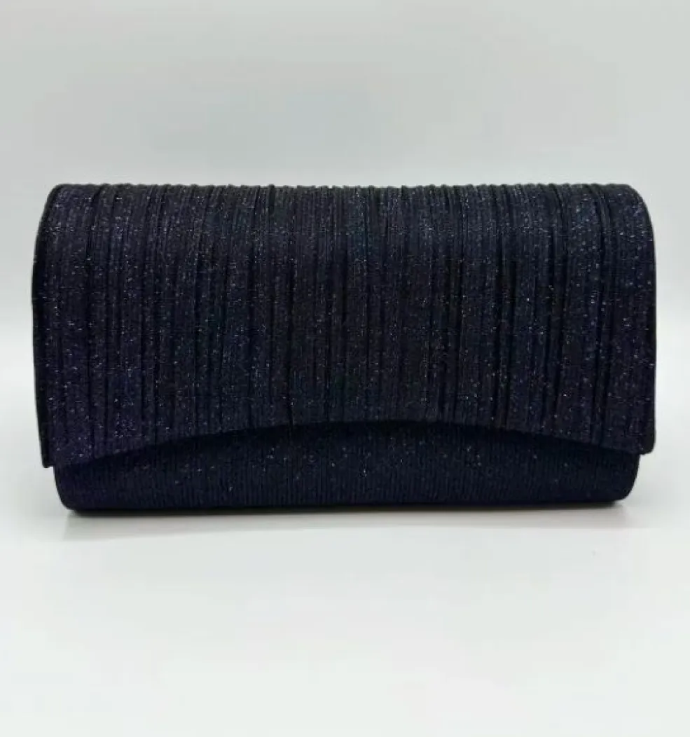 En mørkeblå taske fra Anobel Copenhagen med en struktureret, rektangulær form. Tasken har en plisseret tekstur, der giver den et skinnende udseende.
