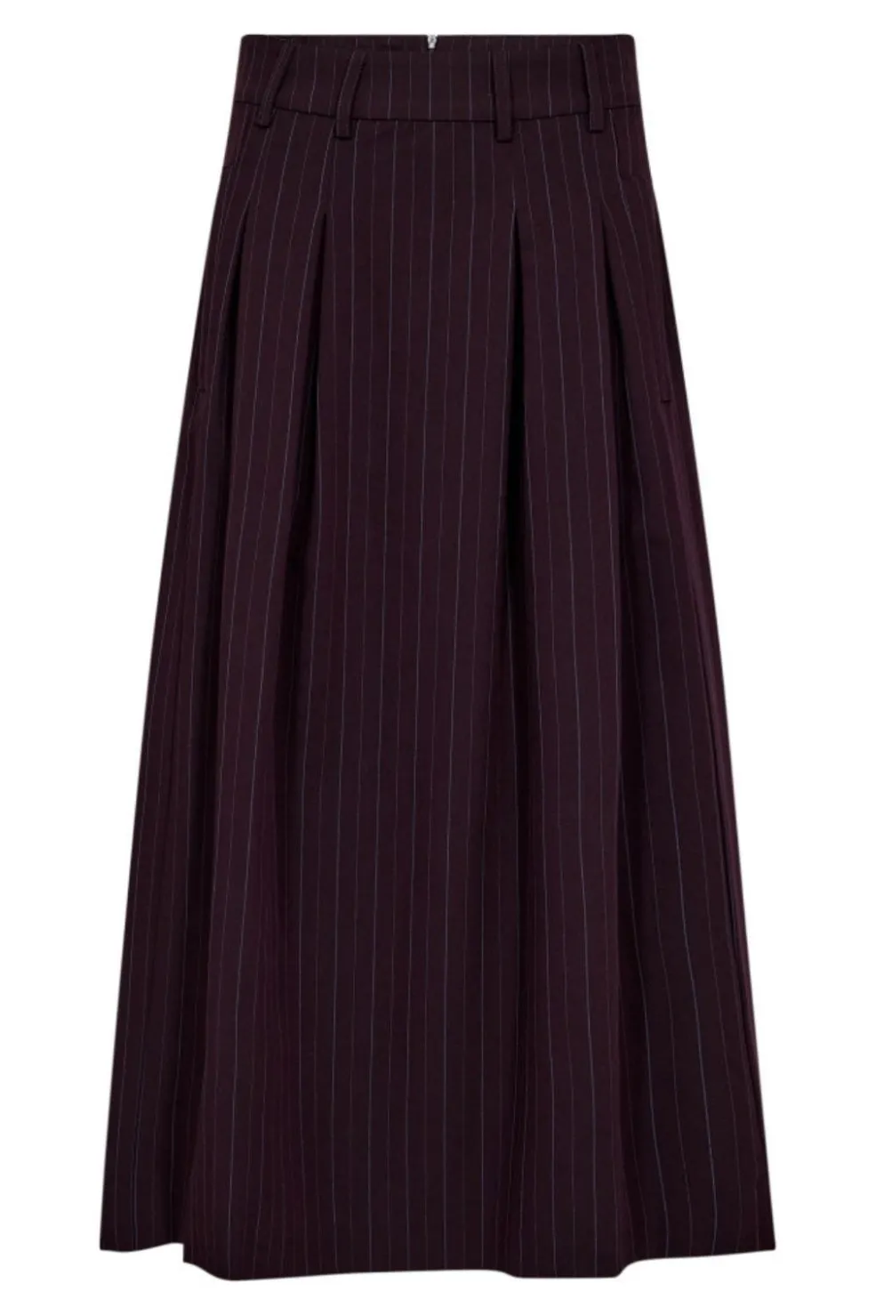 Plisseret nederdel fra Co´Couture i en dyb blommefarve med et stribet mønster. Nederdelen har en høj talje og en løs pasform.