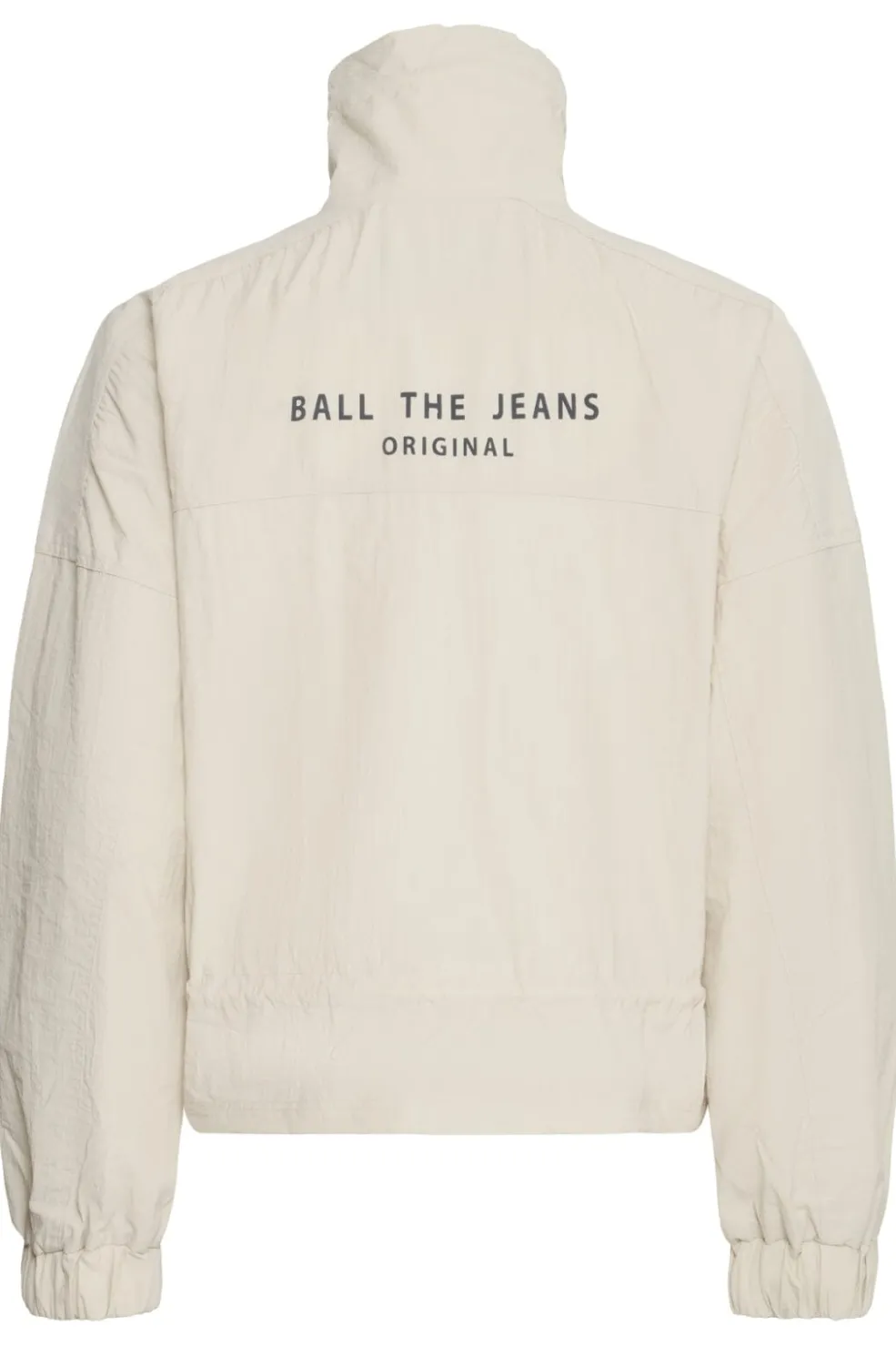 Lys beige jakke fra Ball med høj krave og elastiske manchetter. Jakken er lavet af genanvendt nylon og har Ball-logoet på fronten og ryggen.