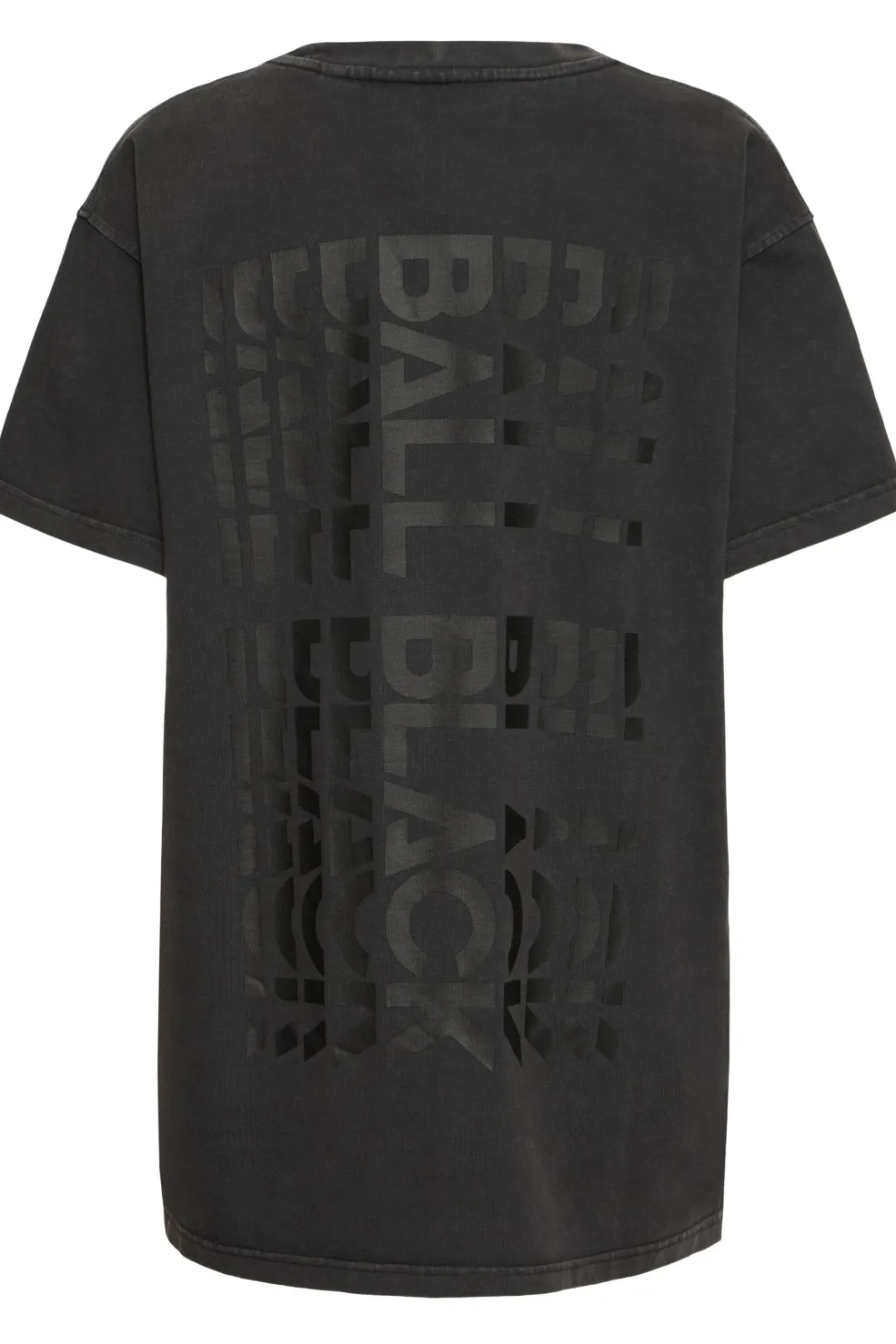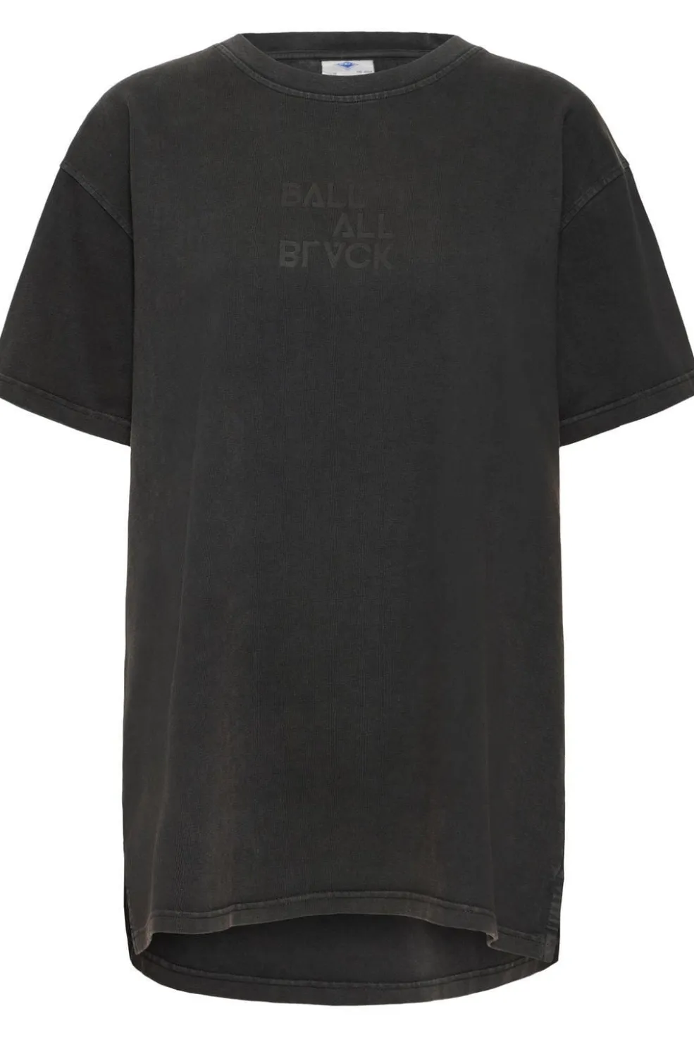 Sort T-shirt fra Ball med oversized pasform. Lavet af 100 % bomuld. Har tekstprint på forsiden og et gentaget tekstmønster på bagsiden.