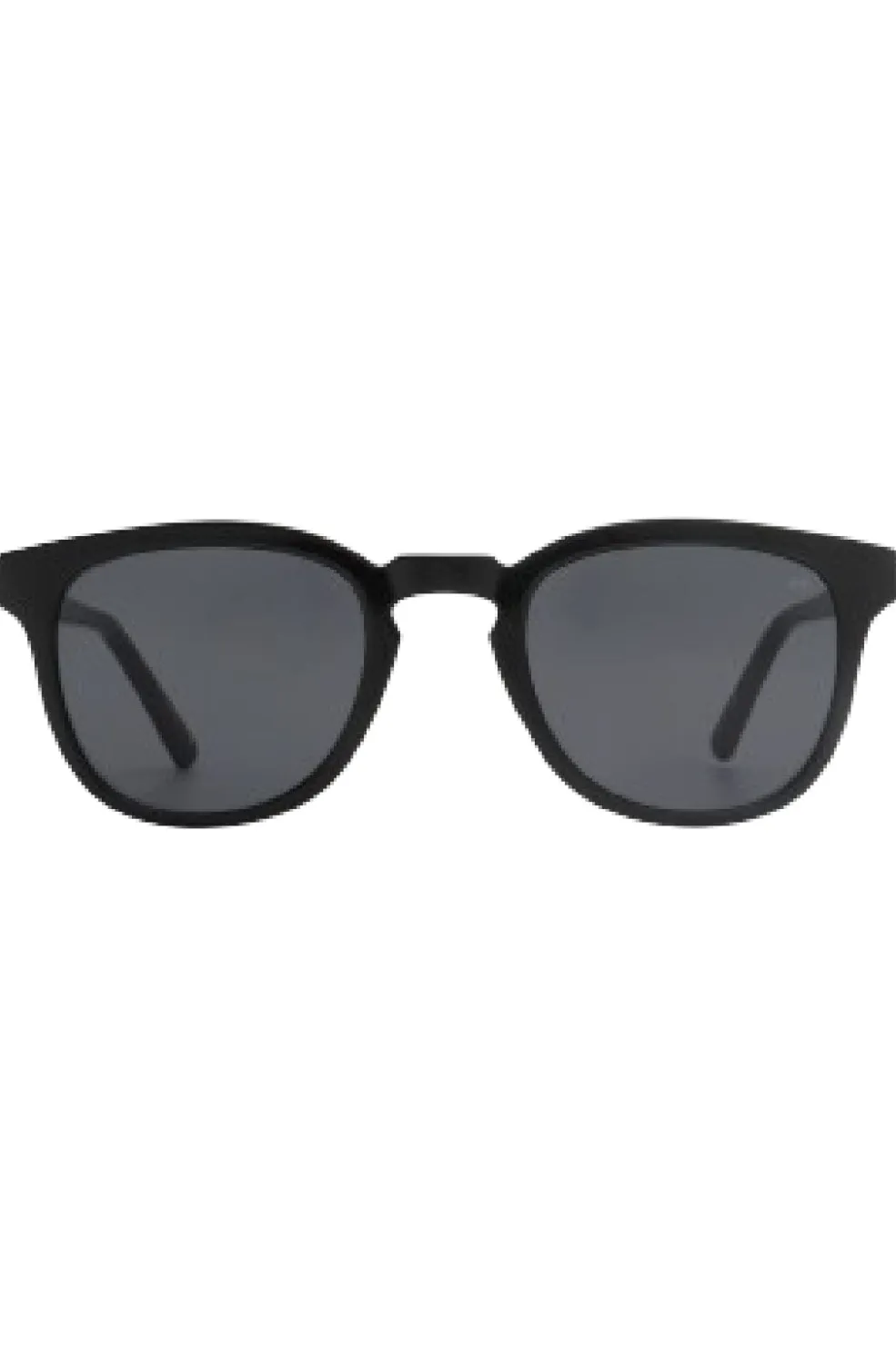 Sorte solbriller fra A. Kjærbede i Wayfarer-form. Stellet er lavet af Tritan Renew med polycarbonatlinser og UV400-beskyttelse. Brillerne har formbare stænger med metalkerner.