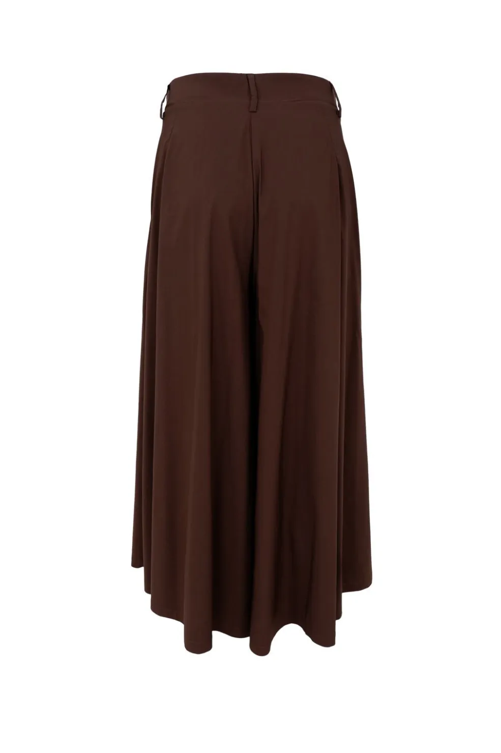 Brun splitnederdel fra Black Colour med en løs pasform. Nederdelen går til læggen og har både lynlås og knapper som lukning.