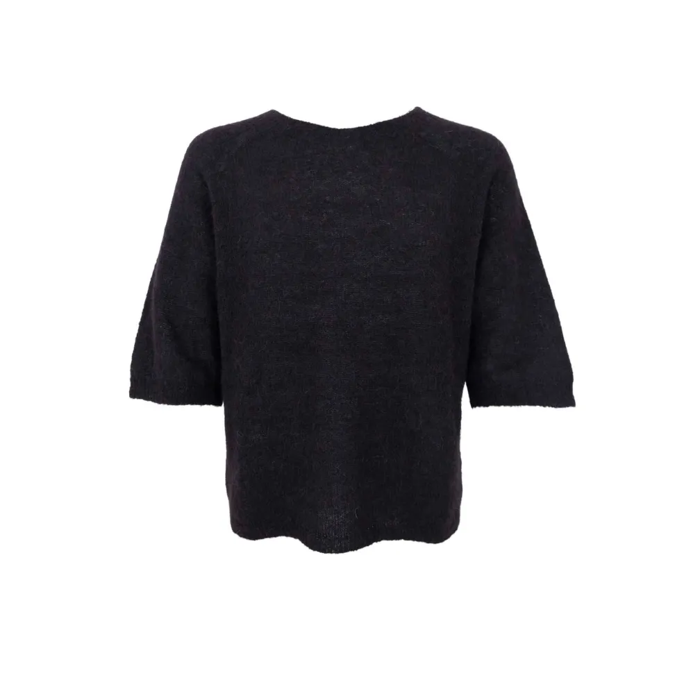 Sort striktrøje fra Black Colour med løs pasform og 3/4 ærmer. Trøjen har en rund halsudskæring og er lavet af en blanding af syntetiske fibre og uld.