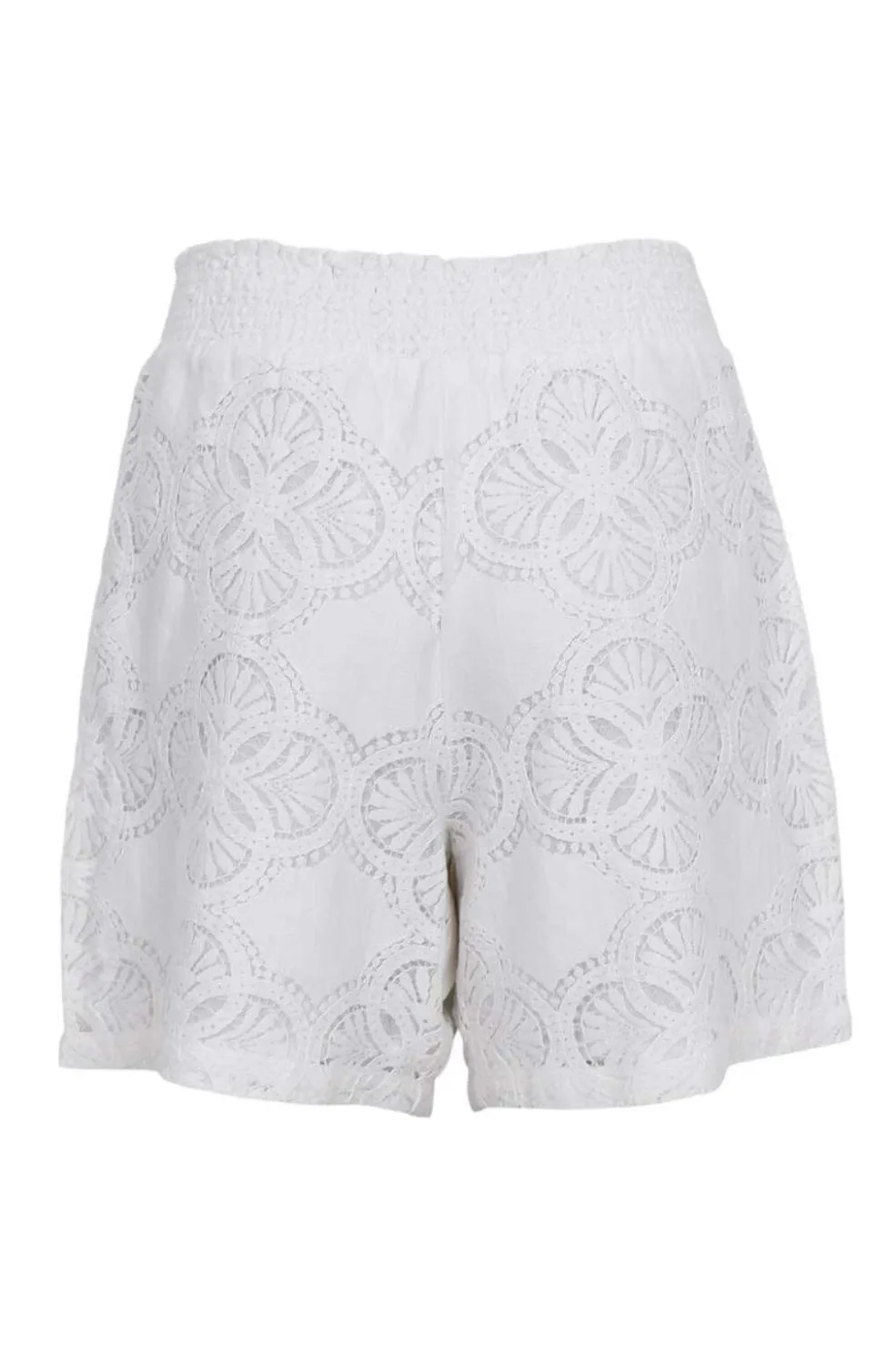 Off-white shorts i blondestof med blomstermønster. Shortsene har en elastisk talje og er fremstillet i et luftigt bomuldsmateriale med fine blonde-detaljer.
