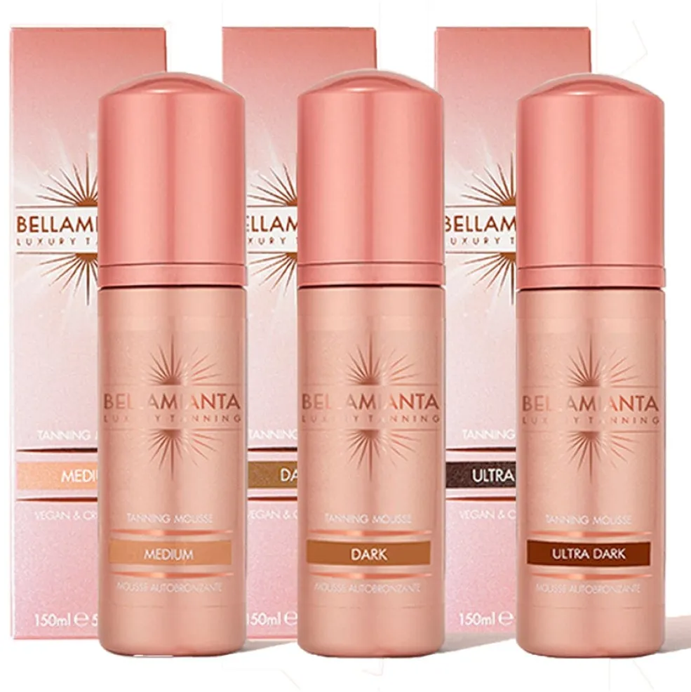 Selvbruner-mousse med medium farve fra Bellamianta. En vegansk og PETA-godkendt selvbruner med DHA og naturlige ekstrakter som mango og papaya.