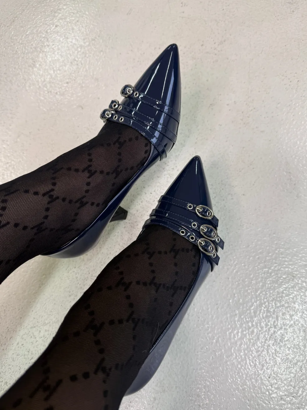 Stiletter fra Bloom i mørkeblå. Skoen har en stilethæl og en firkantet tå, og den passer til bryllupper, festlige lejligheder og formelle begivenheder.