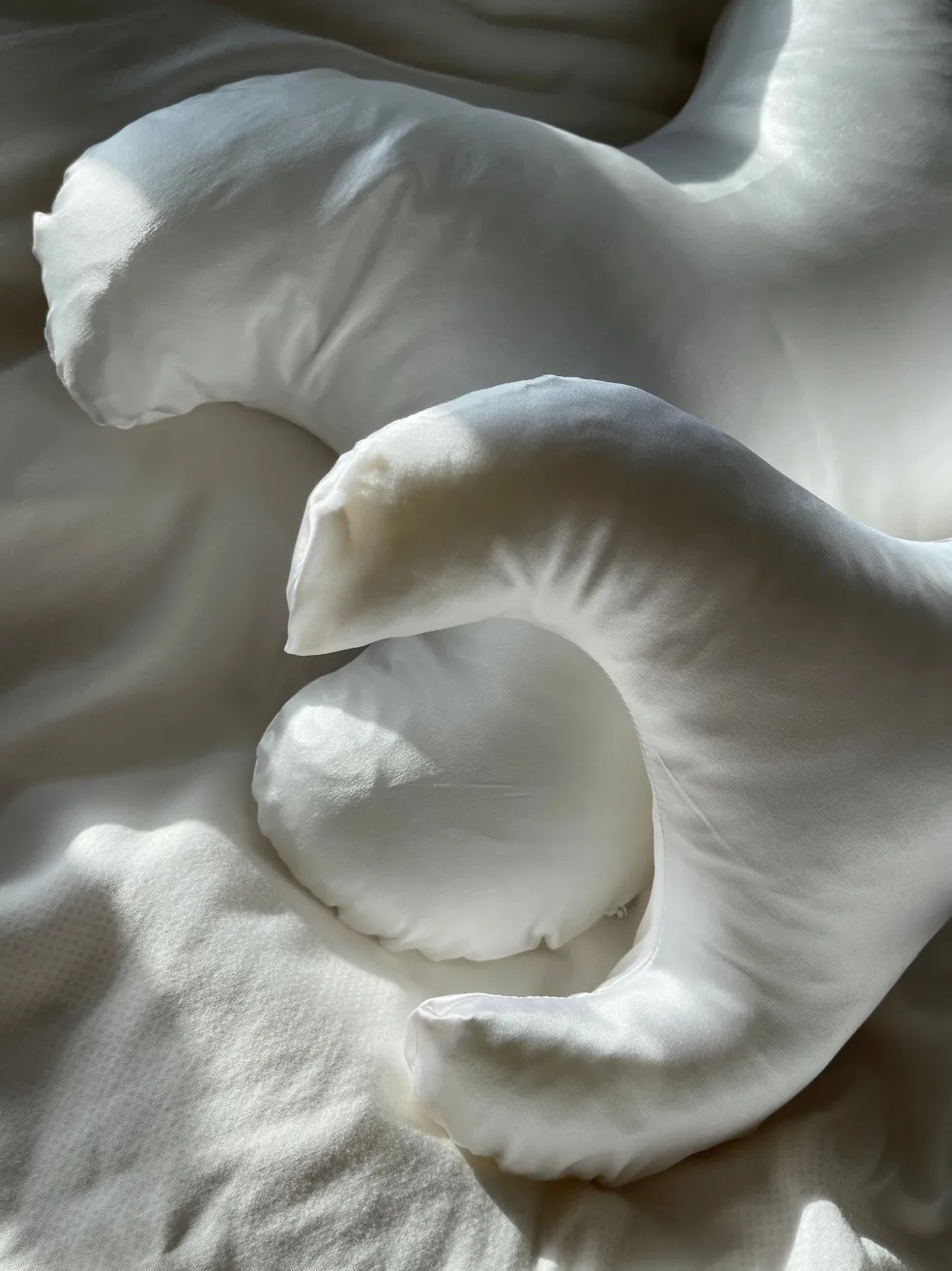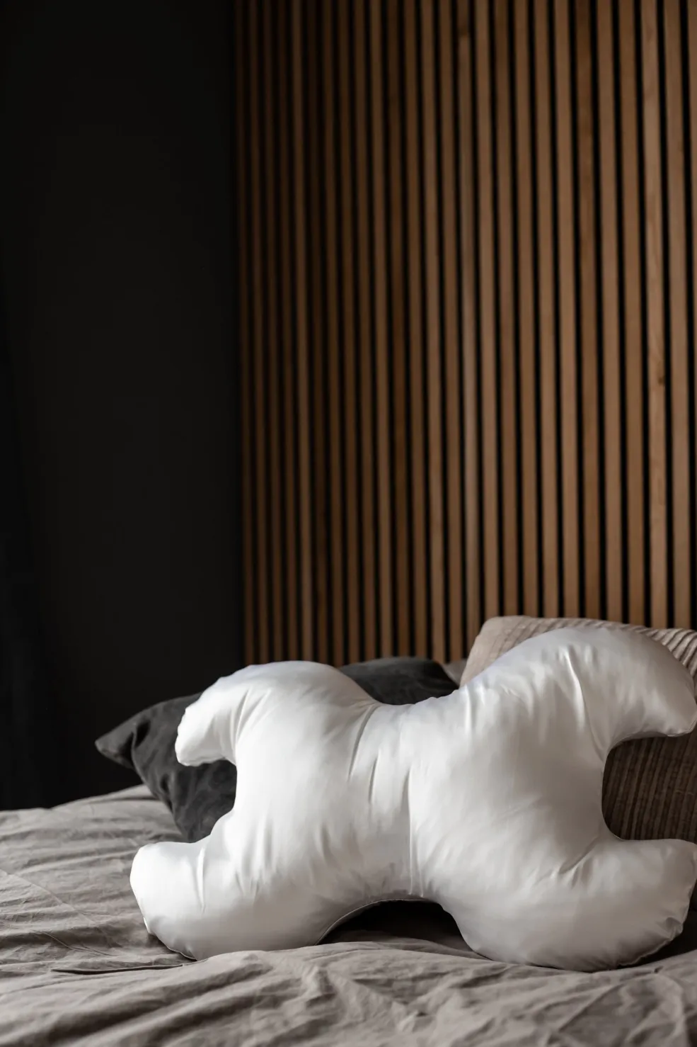 Hvidt pudebetræk fra Save My Face i charmeuse-silke med temperaturregulerende og antiseptiske egenskaber. Betrækket er designet specifikt til Le Grand-puden.