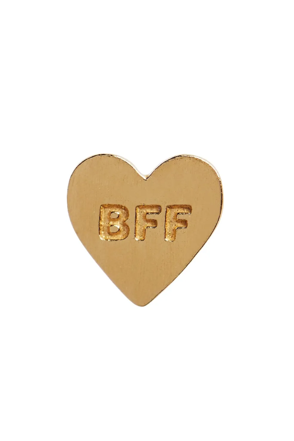 Hjerteformet ørering fra Stine A med BFF-indgravering. Den er fremstillet i 18 karat forgyldt 925 sterling sølv med en enkel stift til fastgørelse.