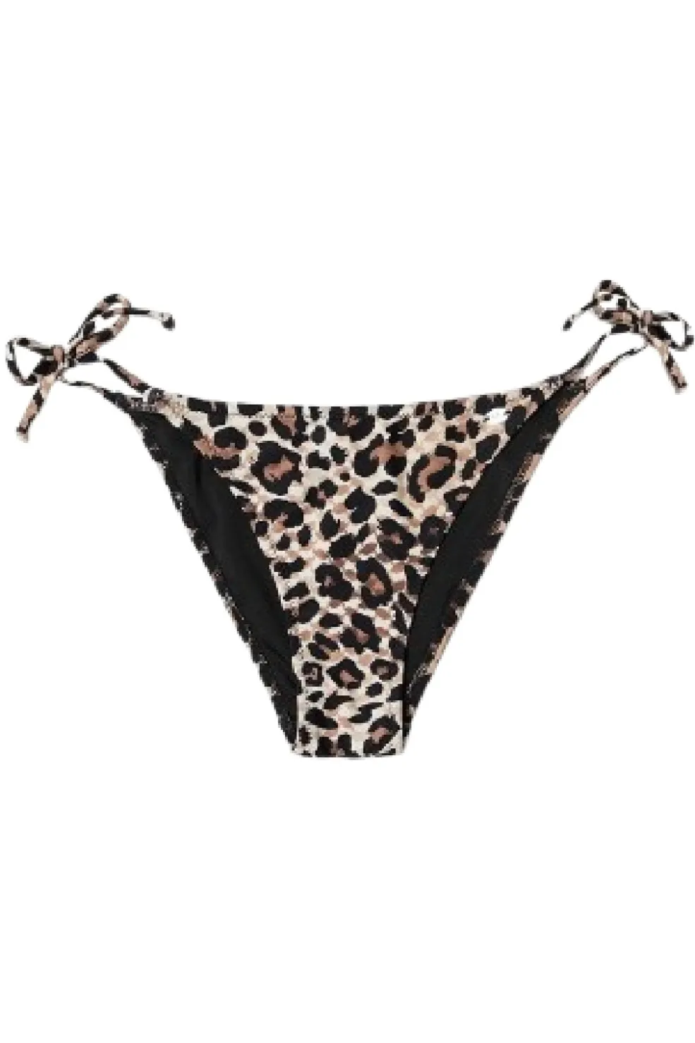 Bikiniunderdel fra Lala Berlin i printet jersey med leopardmønster. De sorte sidepaneler skaber en tydelig kontrast til printet, og bindebåndene i siderne giver mulighed for at tilpasse pasformen.