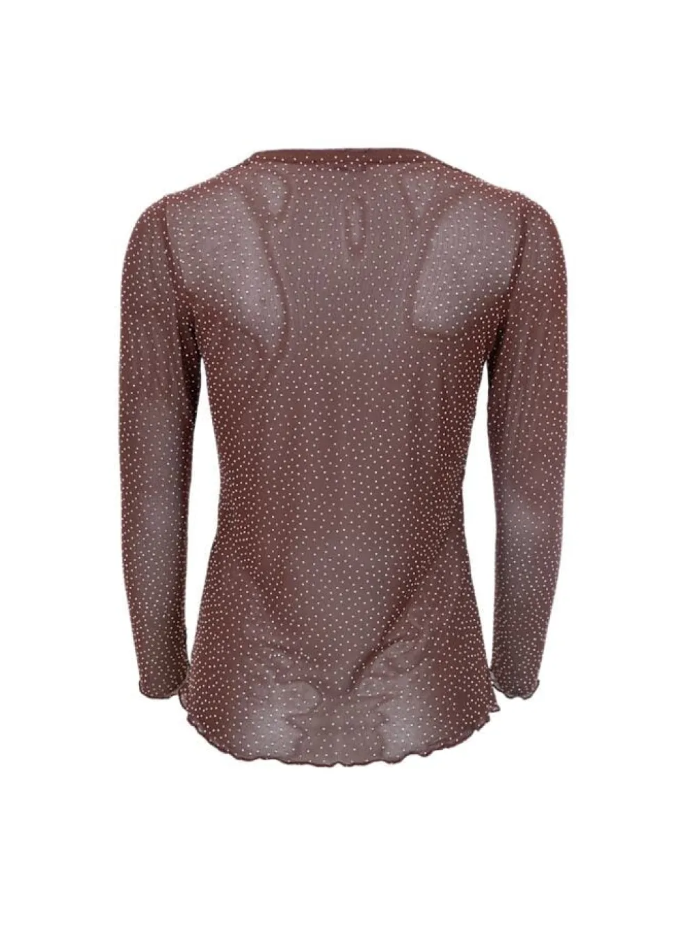 Langærmet t-shirt fra Black Colour i en varm kaffebrun nuance. T-shirten har et prikket mønster og er pyntet med fine pailletter og dekorative syninger.