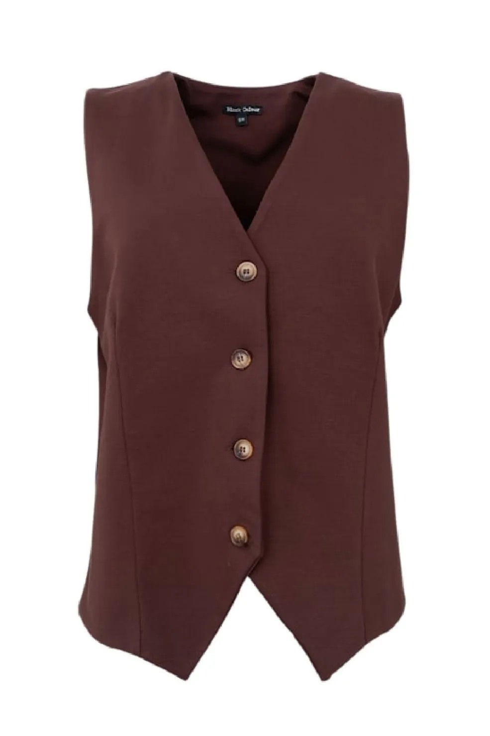En brun casual vest fra Black Colour. Vesten har fem knapper foran og en V-udskæring, der giver den et klassisk udtryk.