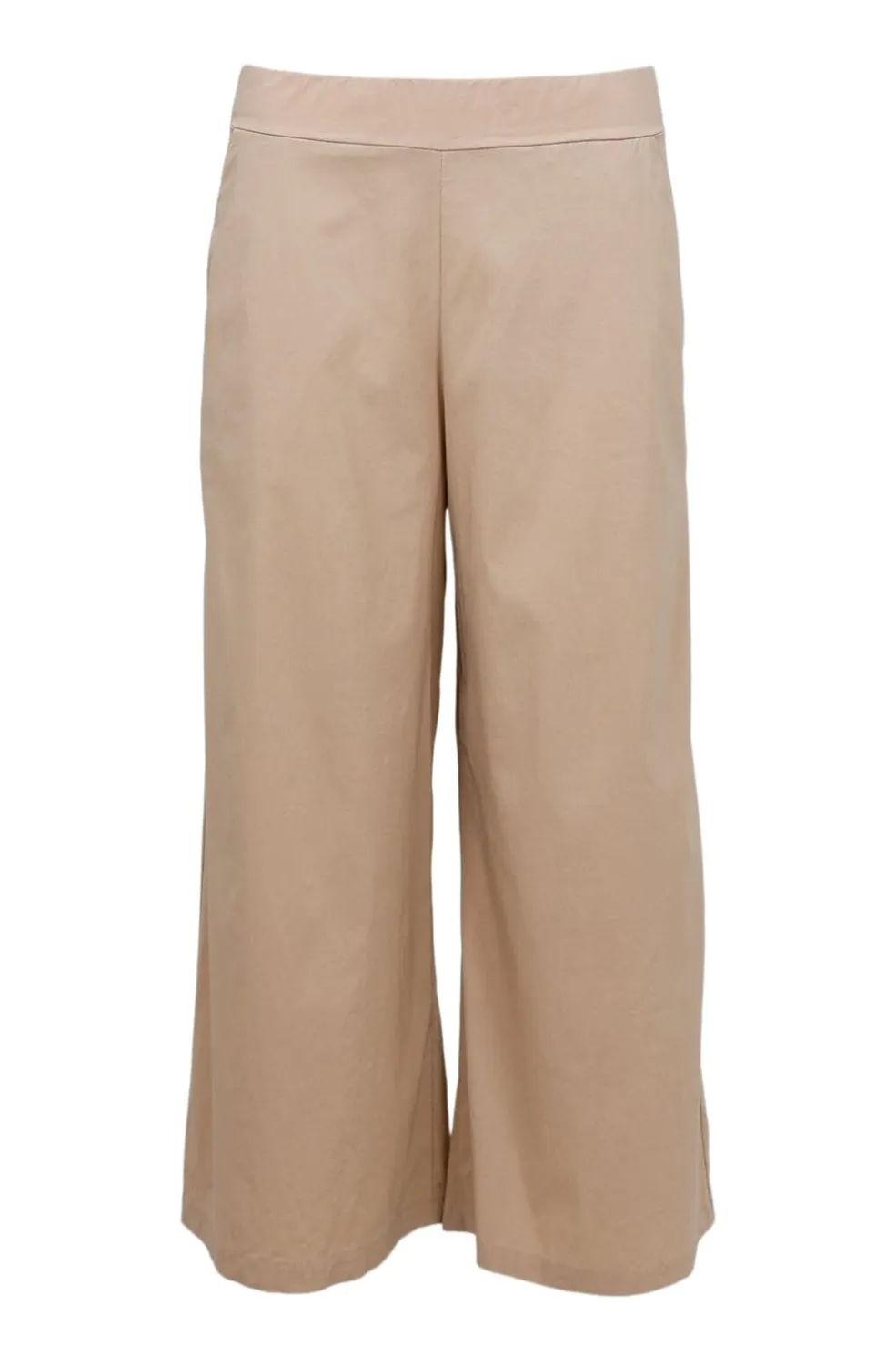 Sandfarvede culottebukser fra Black Colour med brede bukseben og løs pasform. Bukserne har en behagelig længde og falder flot på kroppen.