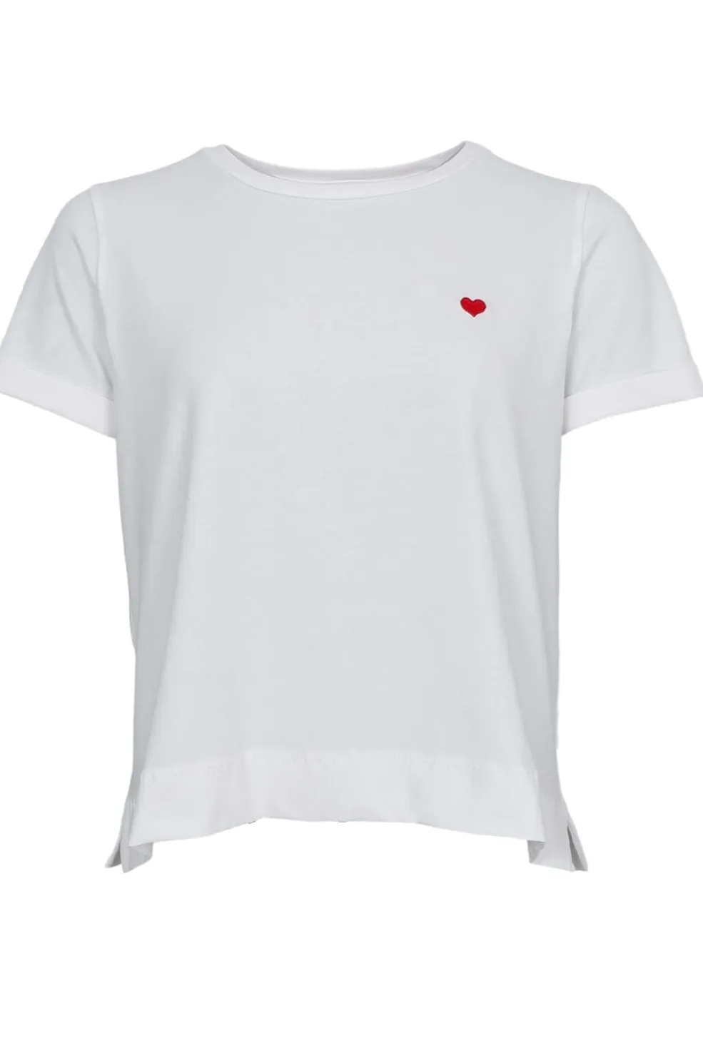 Off-white T-shirt fra Black Colour med et lille rødt hjerteprint på brystet. T-shirten har en rund hals og korte ærmer.